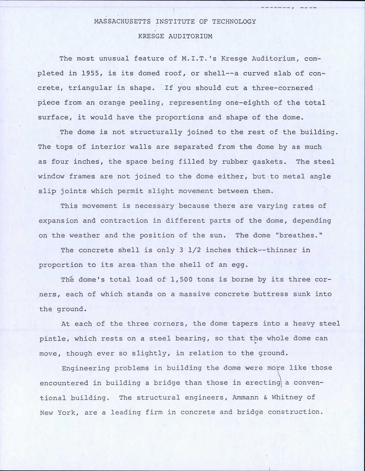 48R Massachusetts Ave - Kresge Auditorium - Supplemental Material