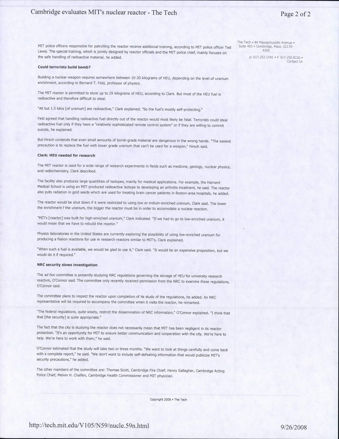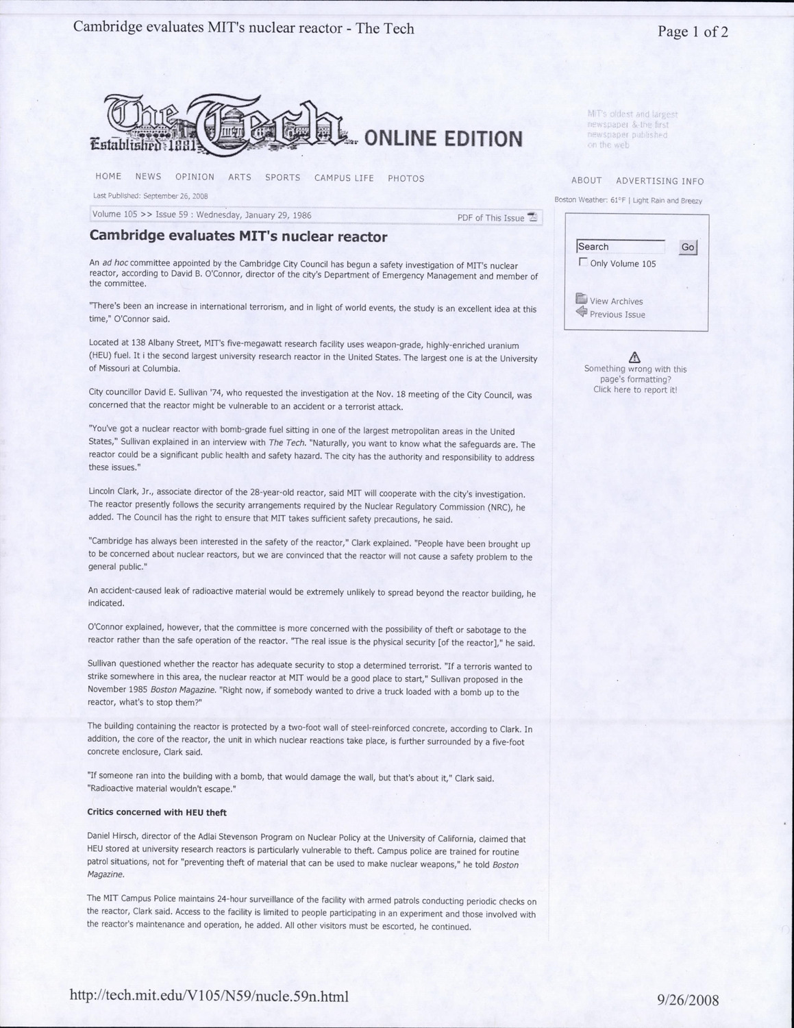 120-130 Albany St - MIT Bldg NW12 - Nuclear Research Reactor - Published Material
