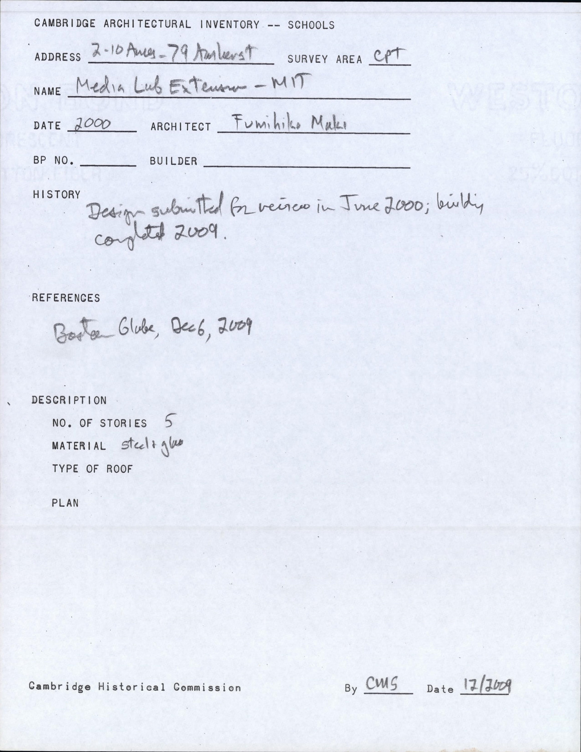 2-10 Ames St - MIT Bldg E14 - Media Lab Extension - Architectural Inventory Form
