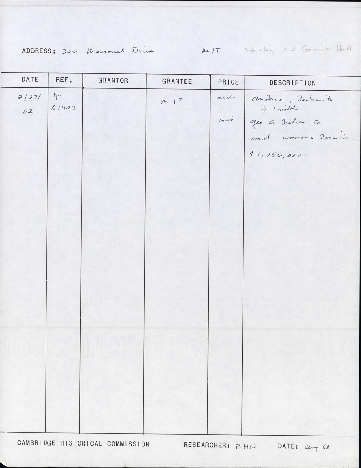 320 Memorial Dr - MIT McCormick Hall - Research Form