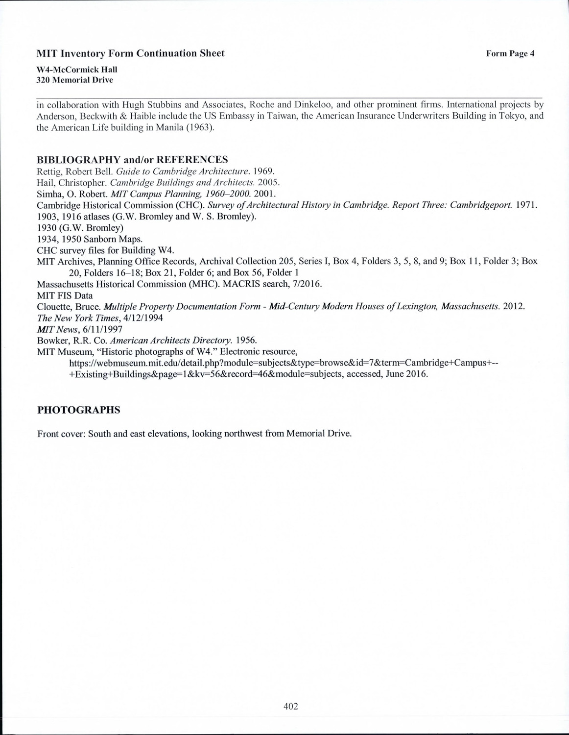 - Cambridge Historical Commission, Digital Architectural Survey and History.