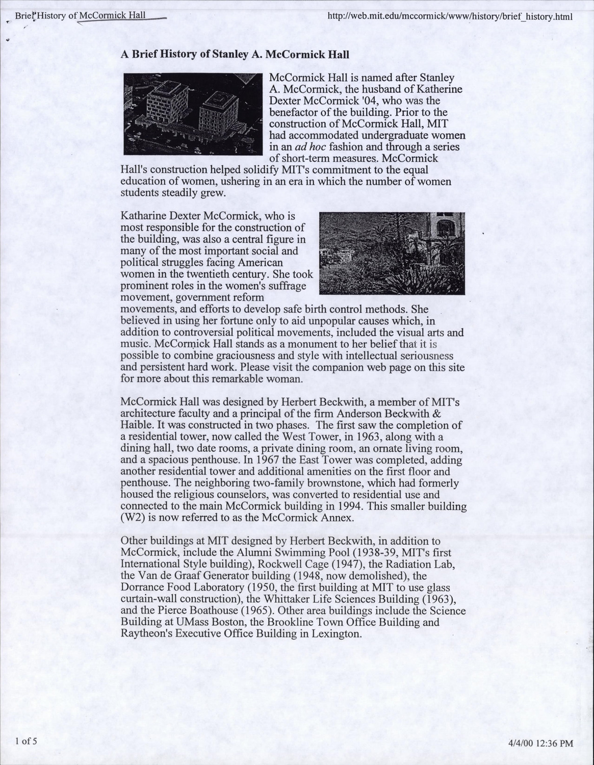 320 Memorial Dr - MIT McCormick Hall - Supplemental Material