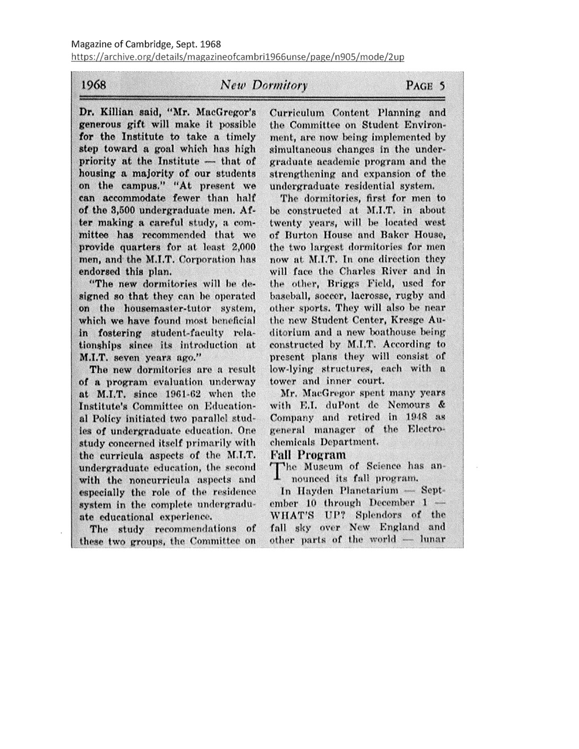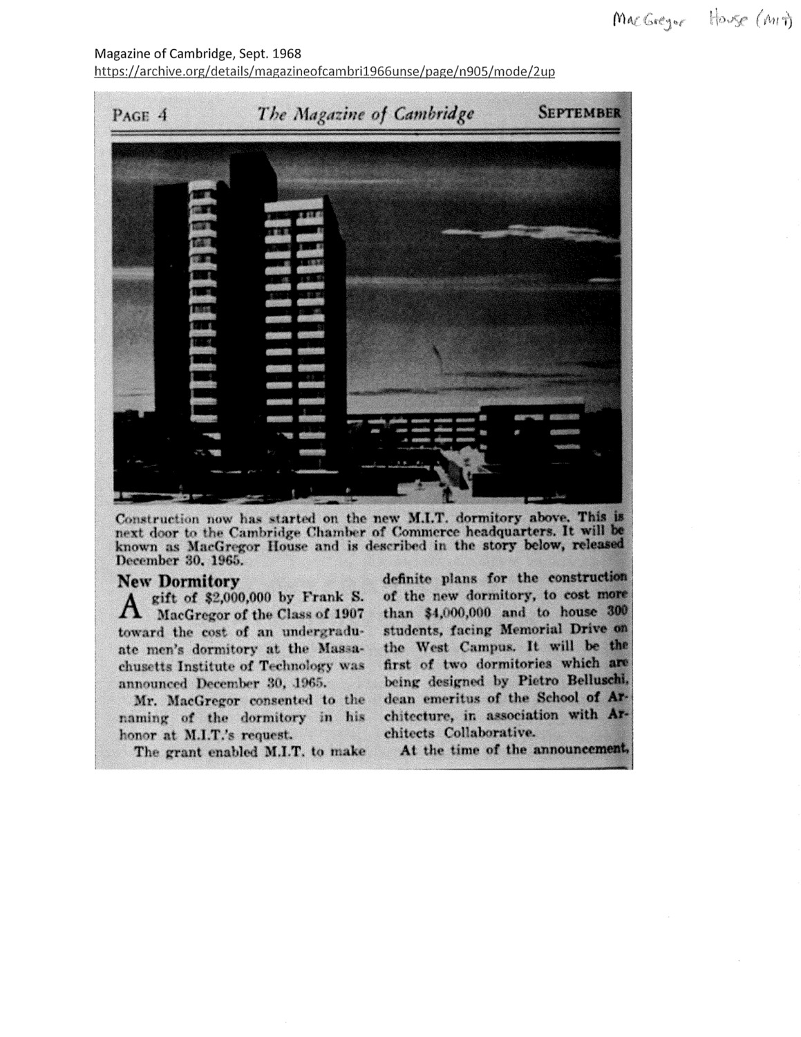 450 Memorial Dr - MIT Bldg w61 - MacGregor House - Published Material