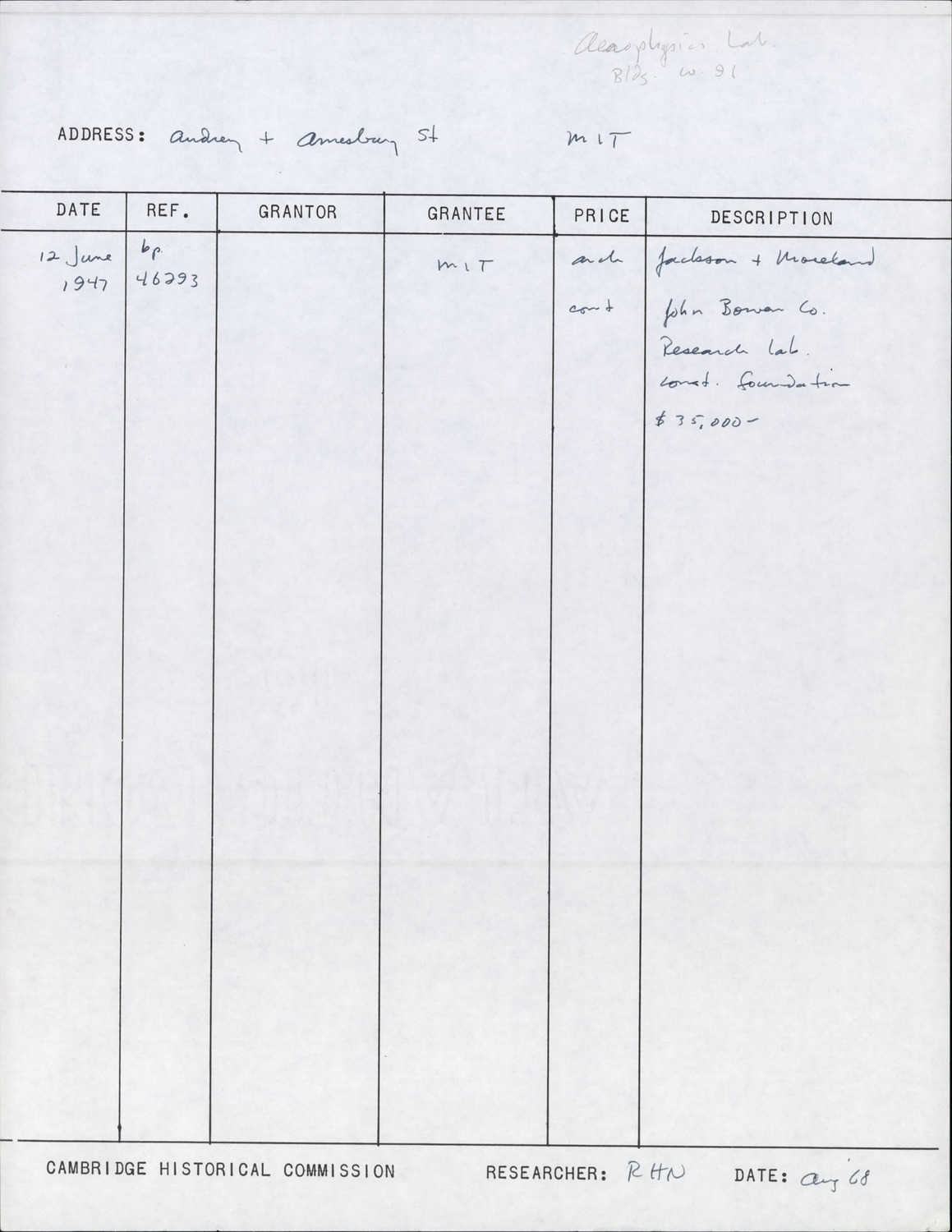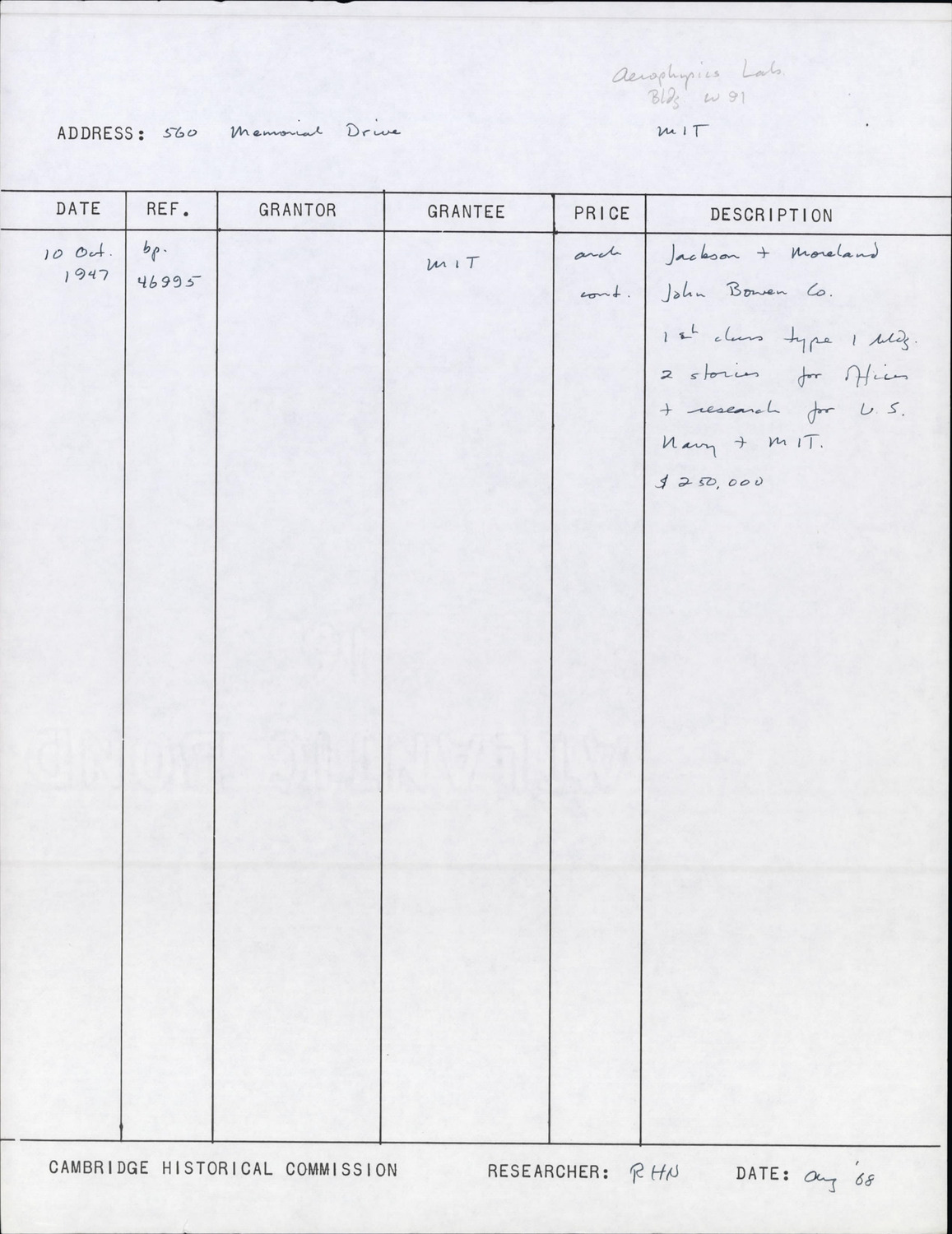 560 Memorial Dr - MIT Bldg - Naval Supersonic Laboratory - Research Form