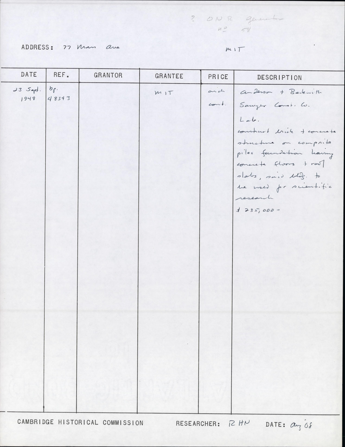 6 Vassar St - MIT Bldg 58 - Laboratory for Nuclear Science and Engineeting - Research Form