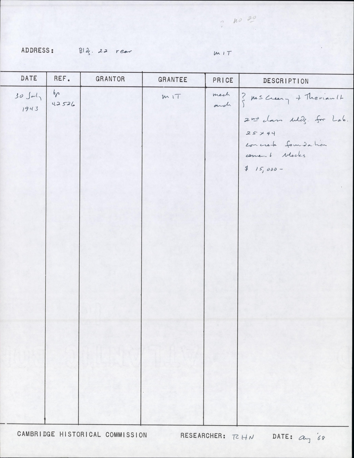 60R Vassar St - MIT Bldg 12 - Chemical Warfare Lab - Research Form