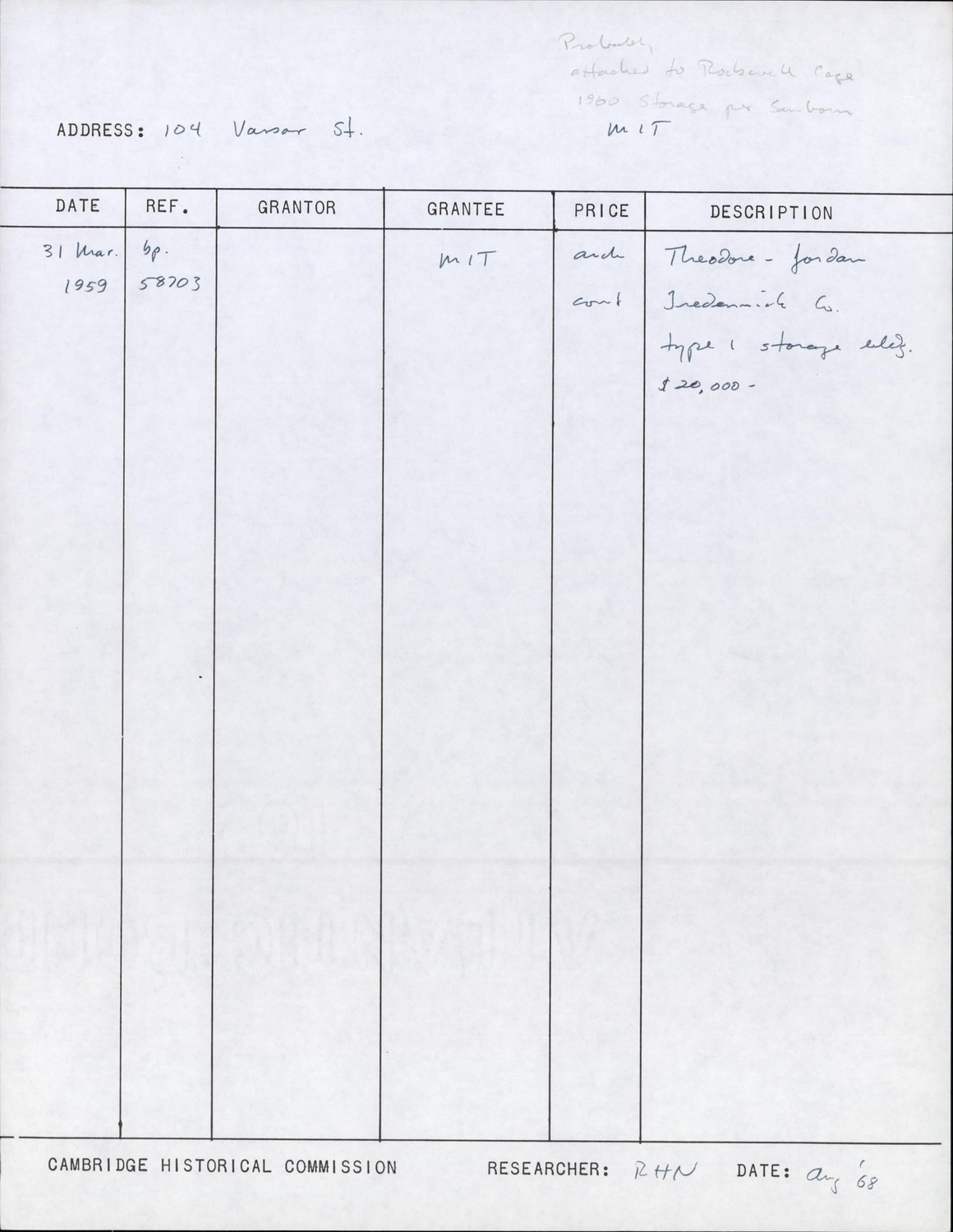 - Cambridge Historical Commission, Digital Architectural Survey and History.