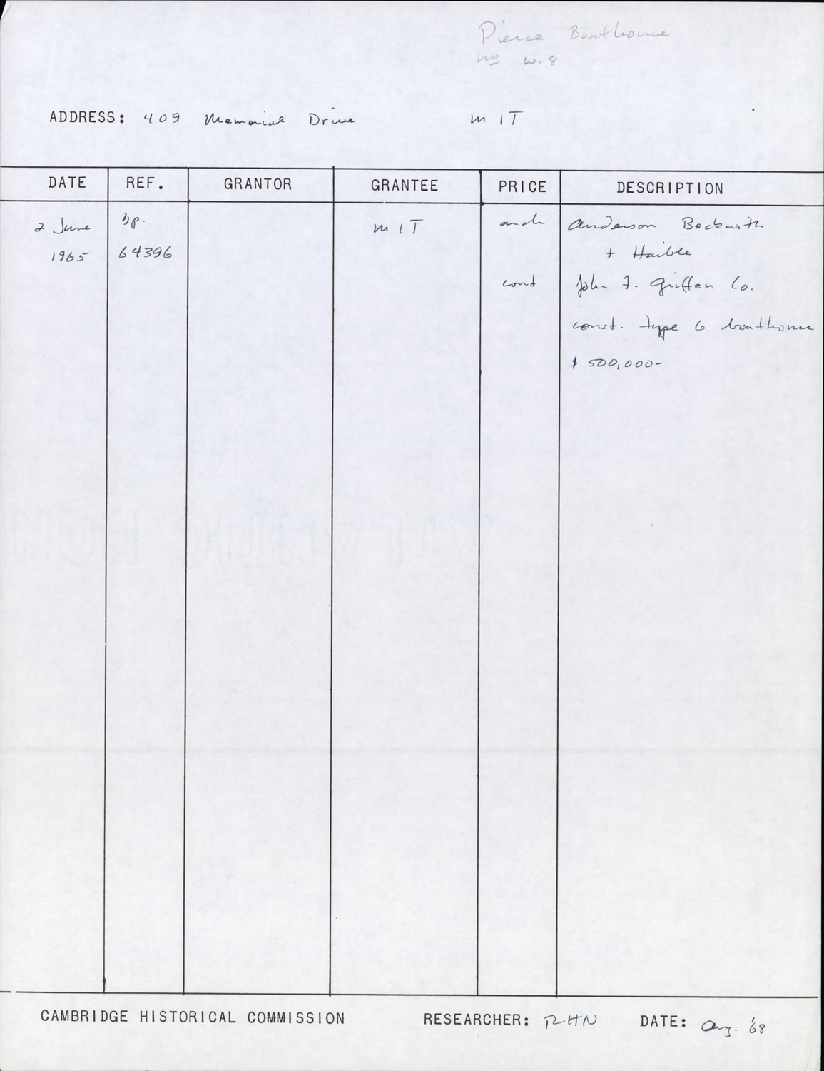 405 Memorial Dr - MIT Pierce Boathouse - Research Form