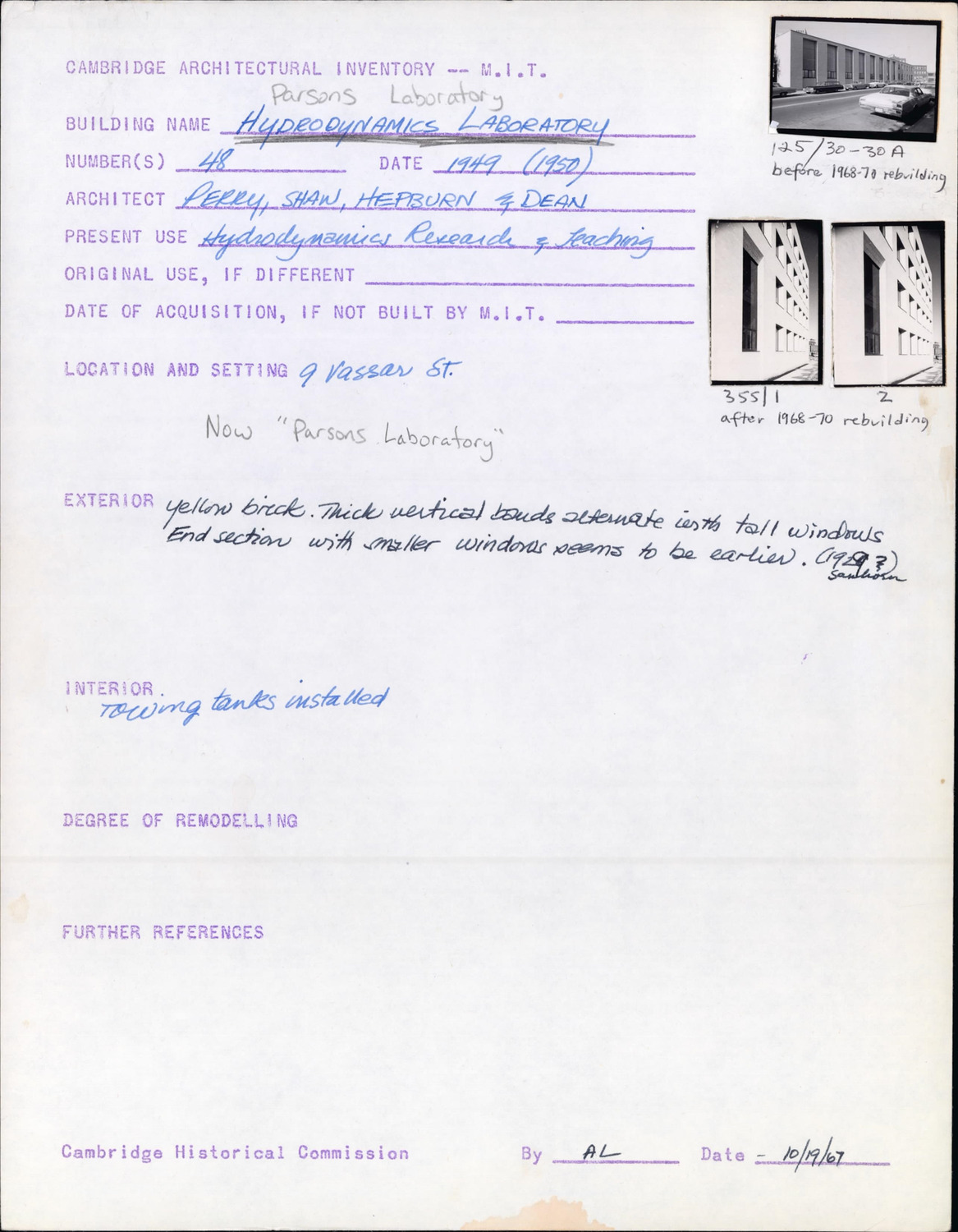 9 Vassar St - MIT Bldg 48 - Parsons Lab - Architectural Inventory Form