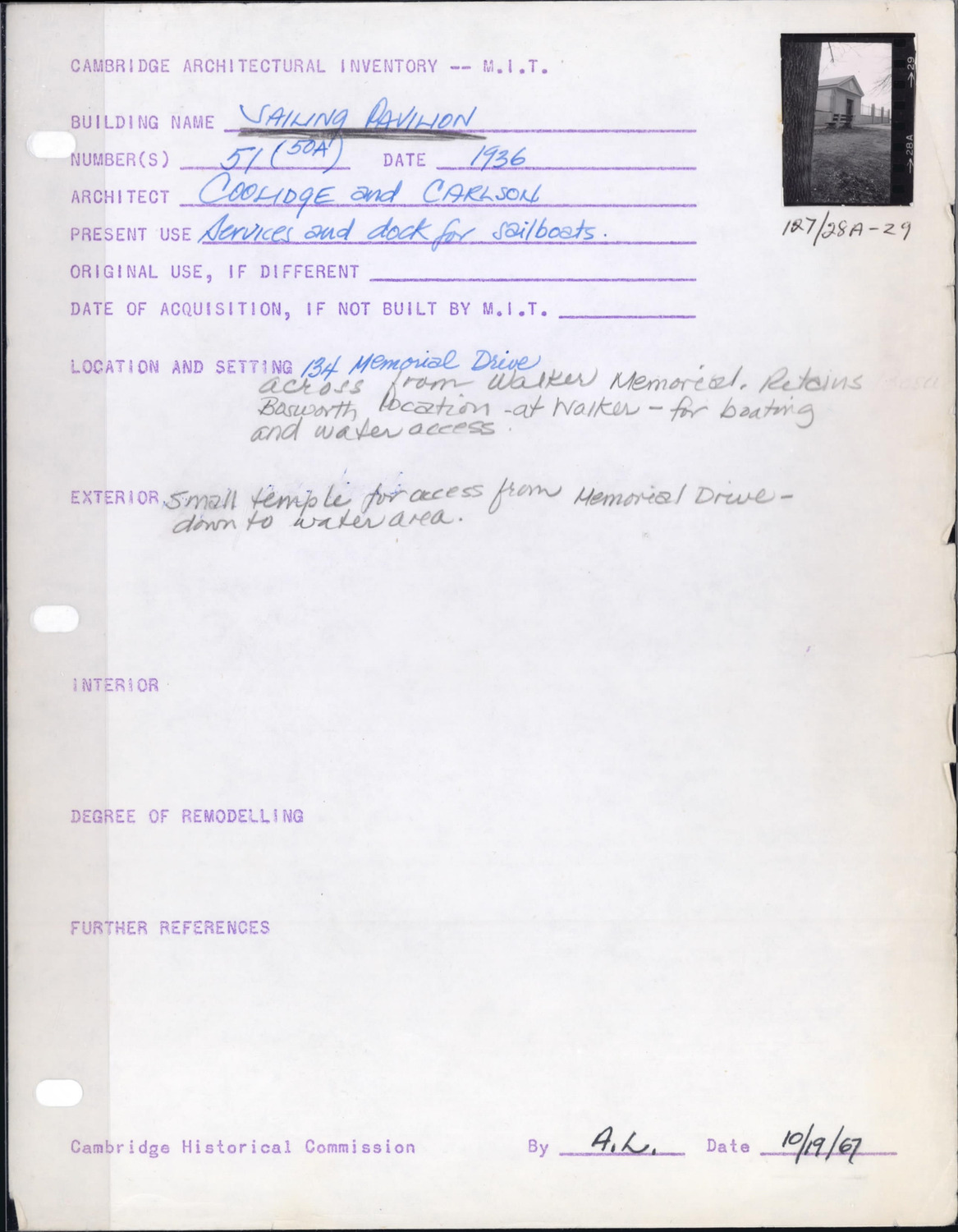 134 Memorial Dr - MIT Bldg 51 - Sailing Pavilion - Architectural Inventory Form