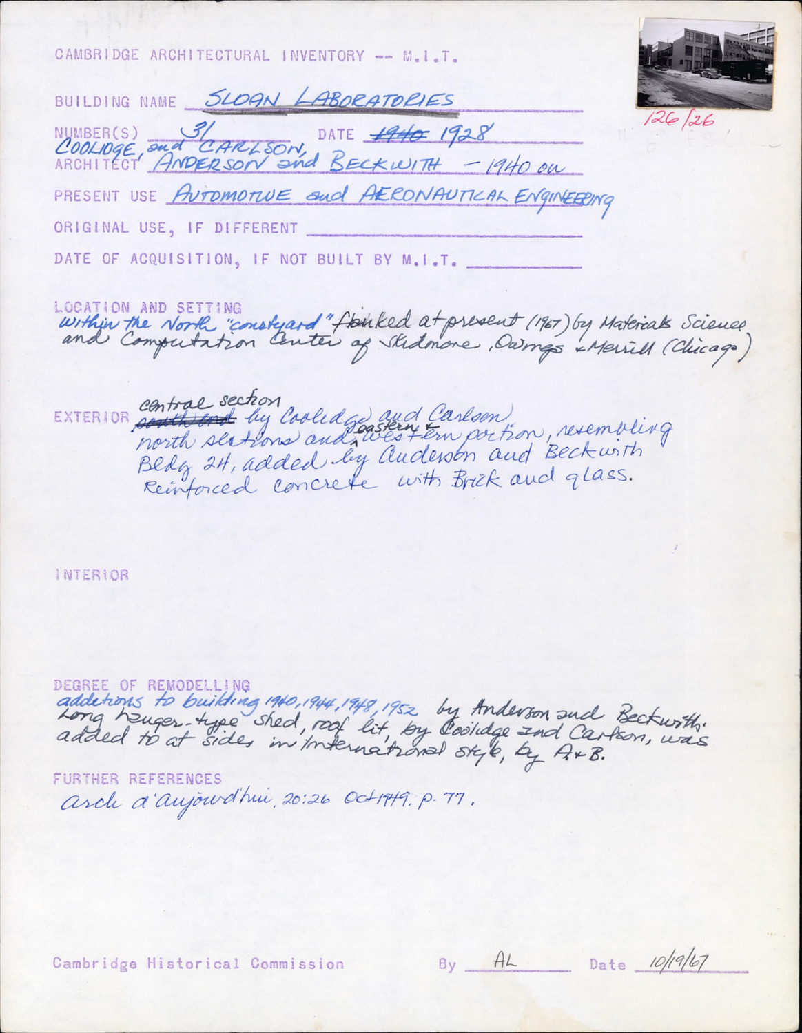 70R Vassar St - MIT Bldg 31 - Sloan Labs - Architectural Inventory Form