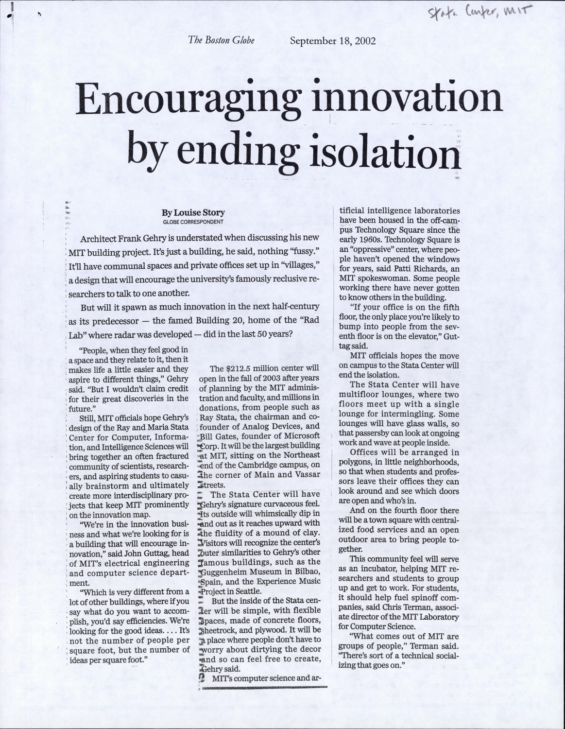 10-40 Vassar St - MIT Stata Center - Published Material