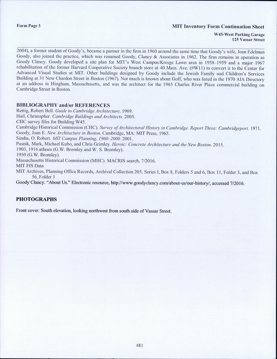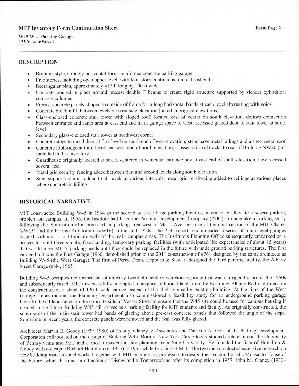125 Vassar St - MIT West Parcking Garage - Research Form