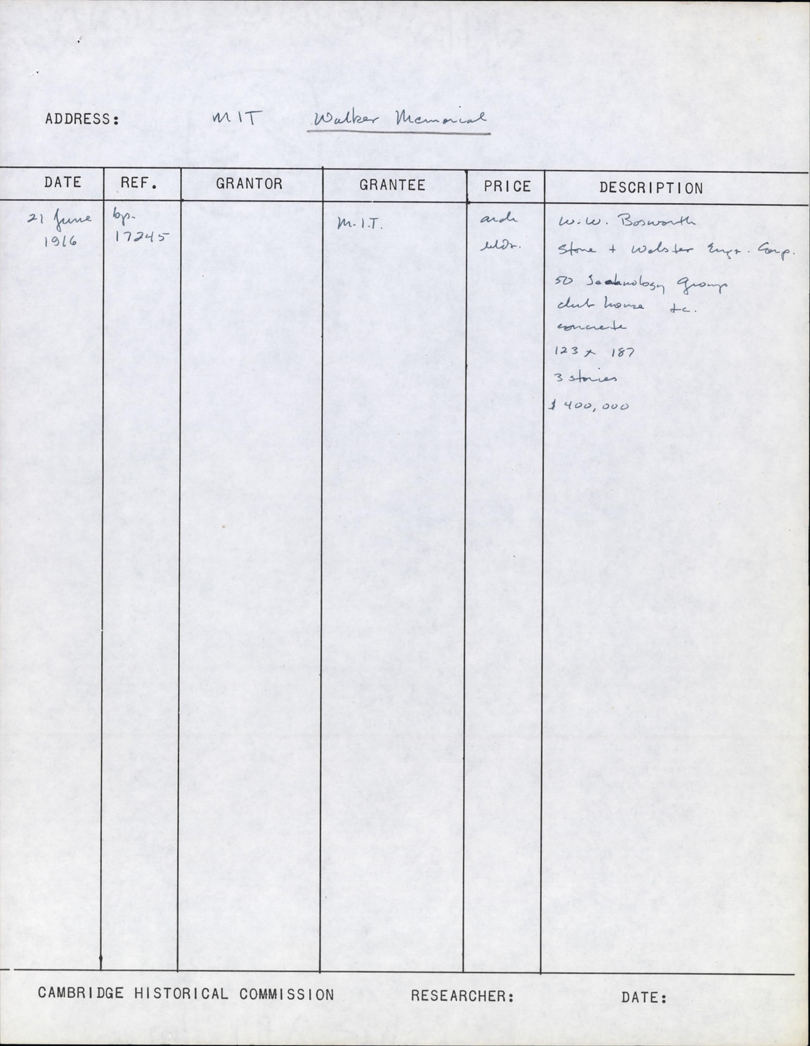 142 Memorial Dr - MIT Bldg 50 - Walker Memorial - Research Form