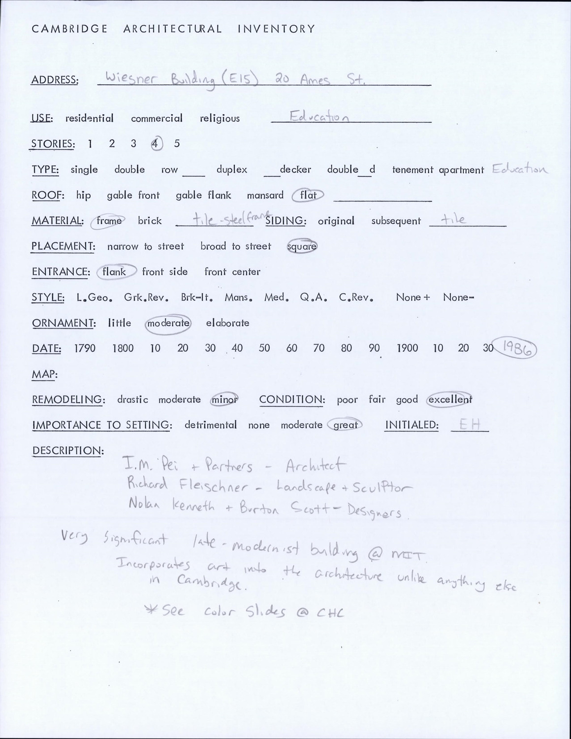 20 Ames St - MIT Bldg E15 - Wiesner Building - Architectural Inventory Form