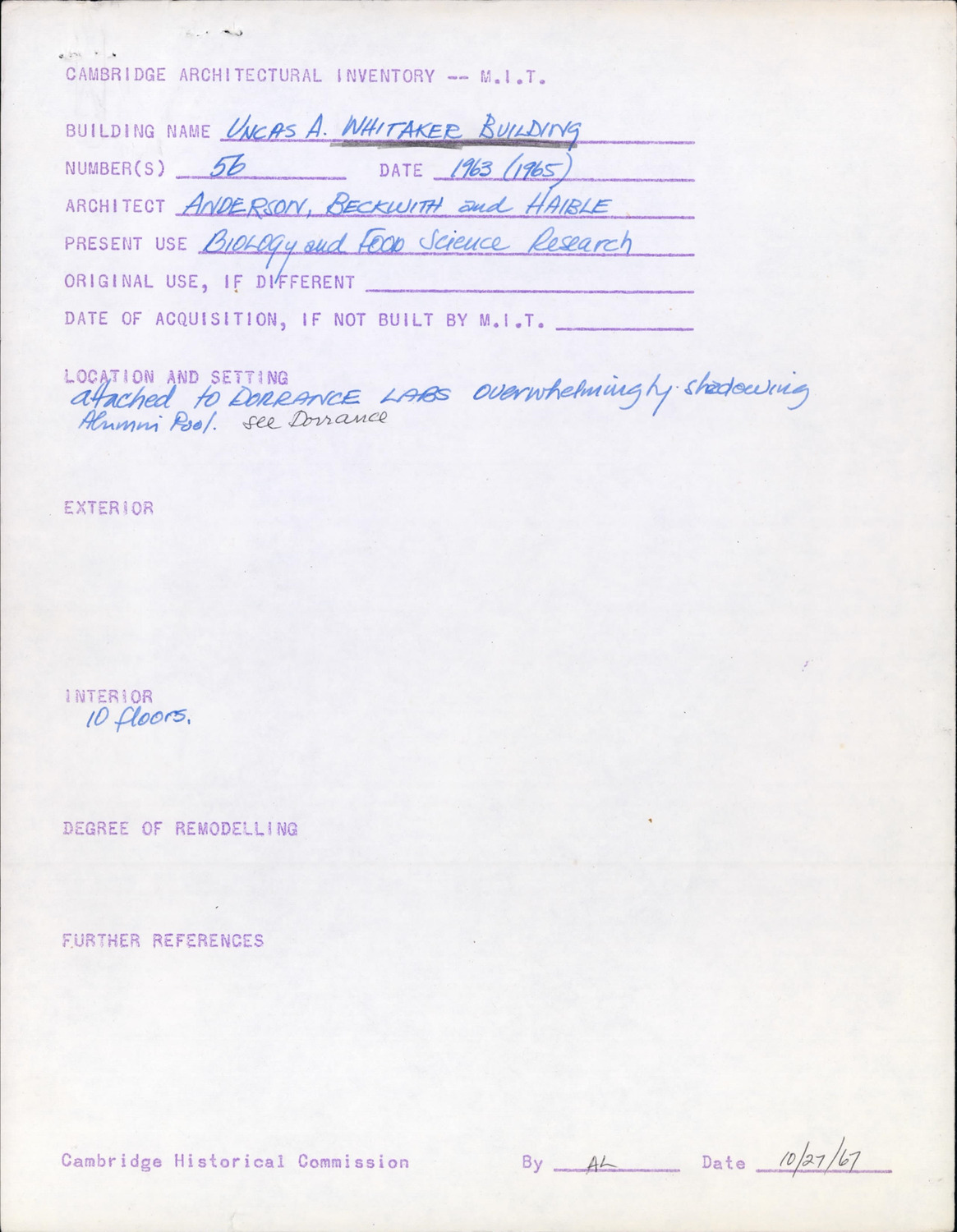 21 Ames St - MIT Bldg 16 - Dorrance Laboratory - Architectural Inventory Form