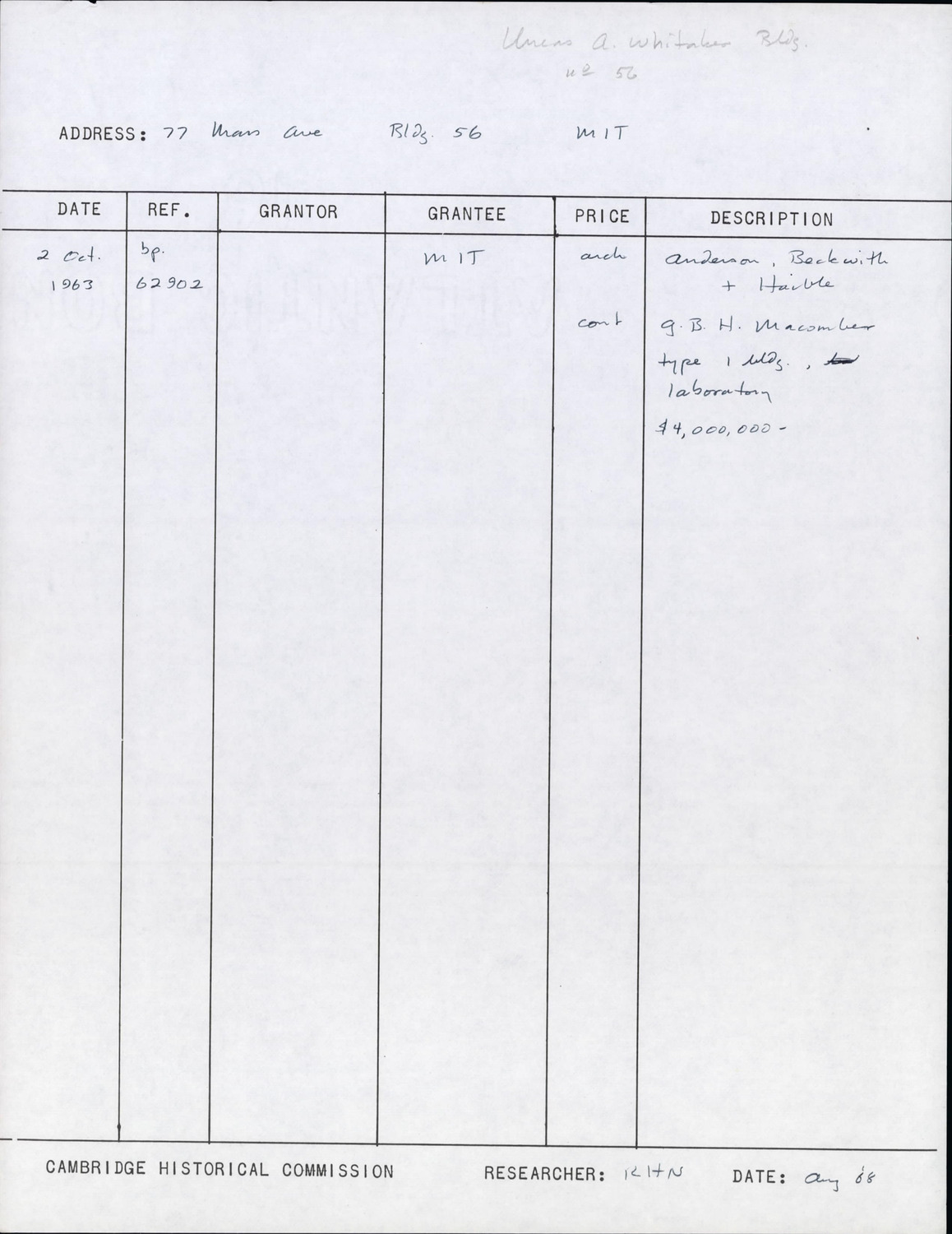 21 Ames St - MIT Bldg 16 - Dorrance Laboratory - Research Form