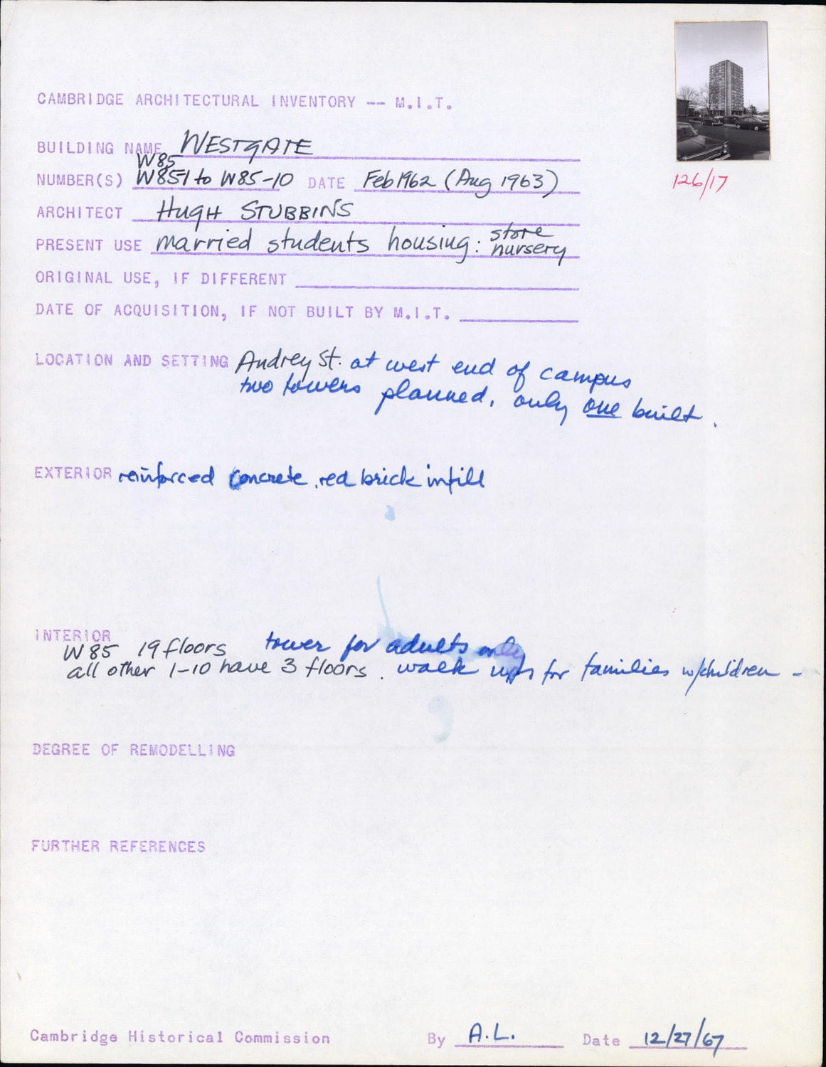 540R Memorial Dr - MIT Westgate - Architectural Inventory Form