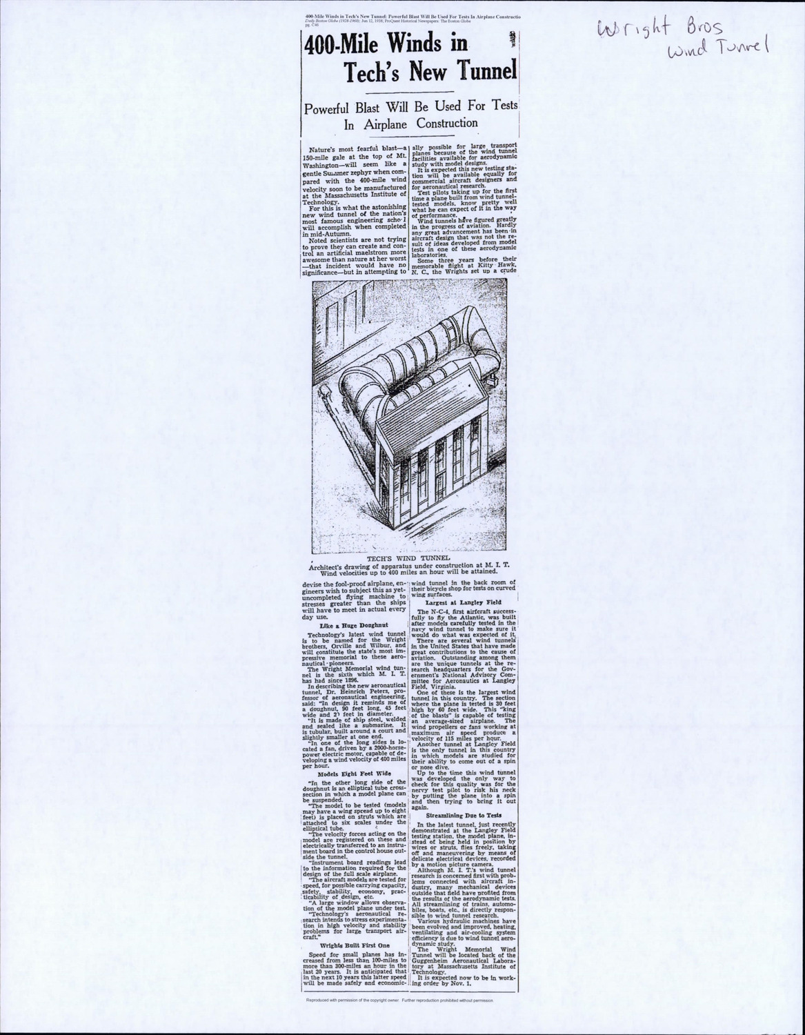 76 Vassar St - MIT Bldg 17 - Wright Brothers Wind Tunnel - Published Material