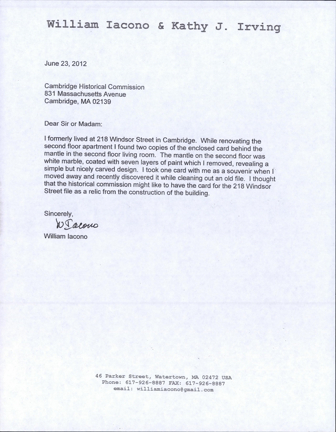 218-220 Windsor St - Correspondence