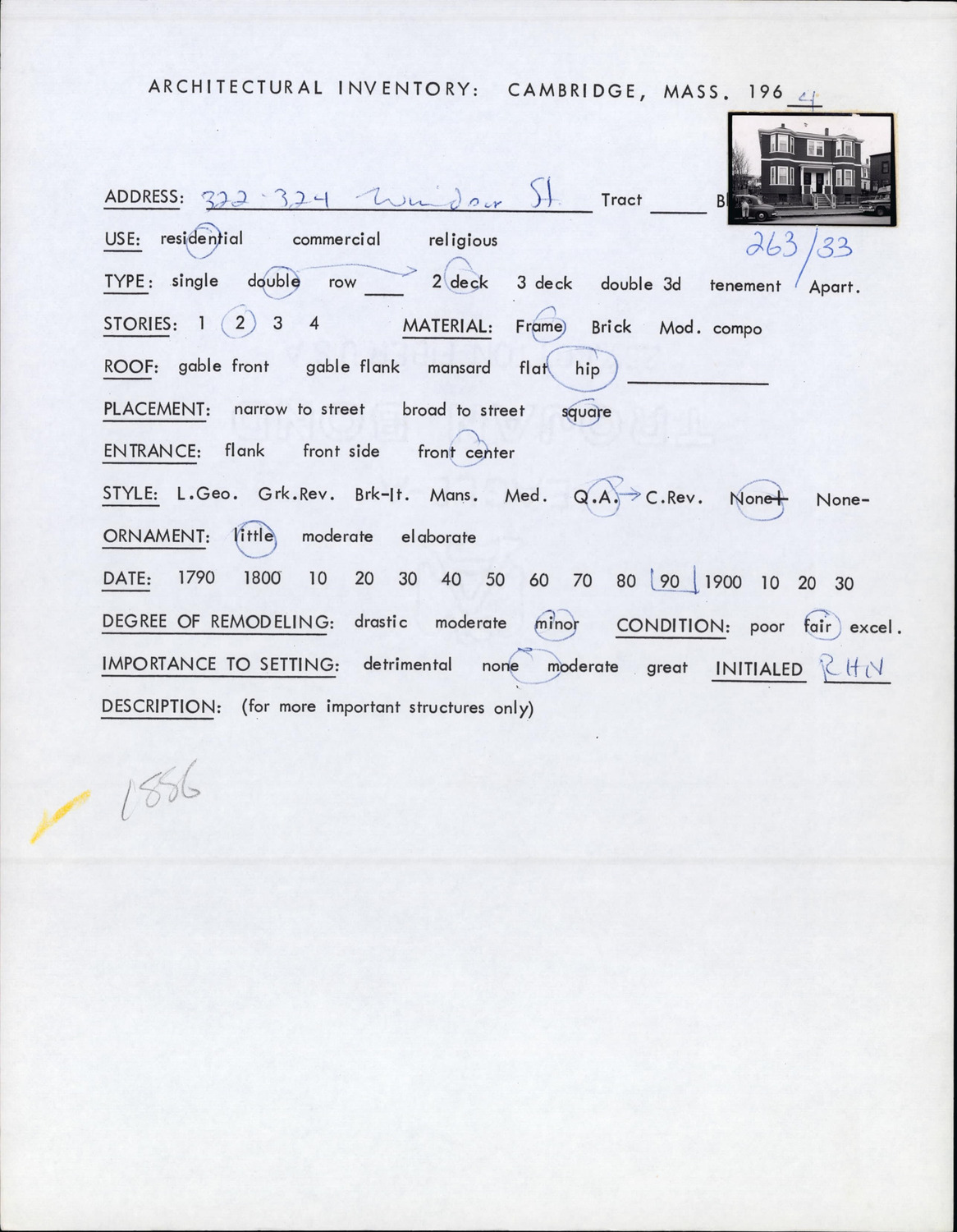 322-324 Windsor St - Architectural Inventory Form