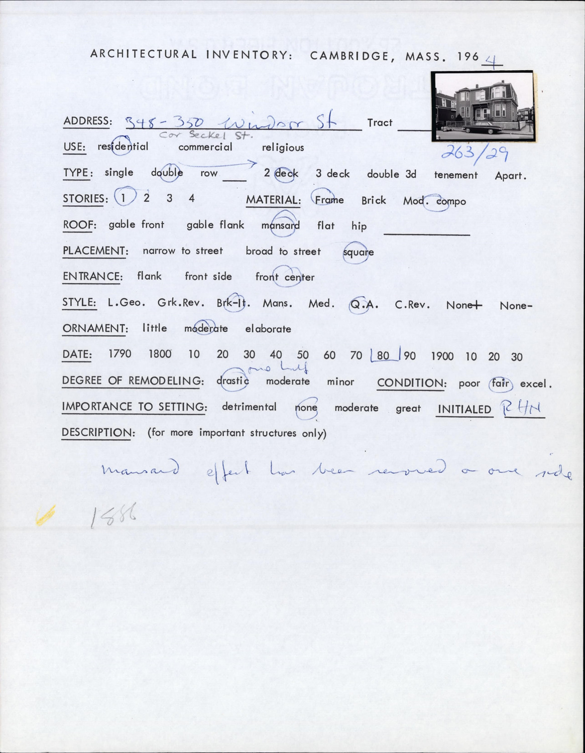 348 Windsor St - Architectural Inventory Form