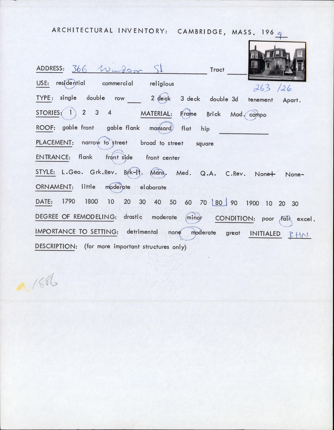 366 Windsor St - Architectural Inventory Form