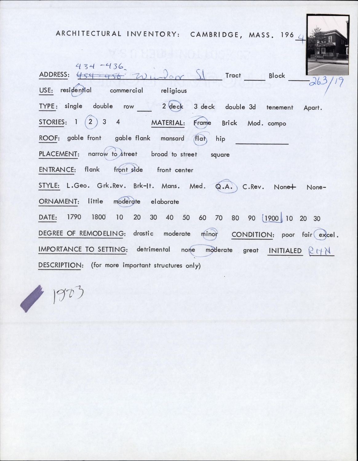 434-436 Windsor St - Architectural Inventory Form
