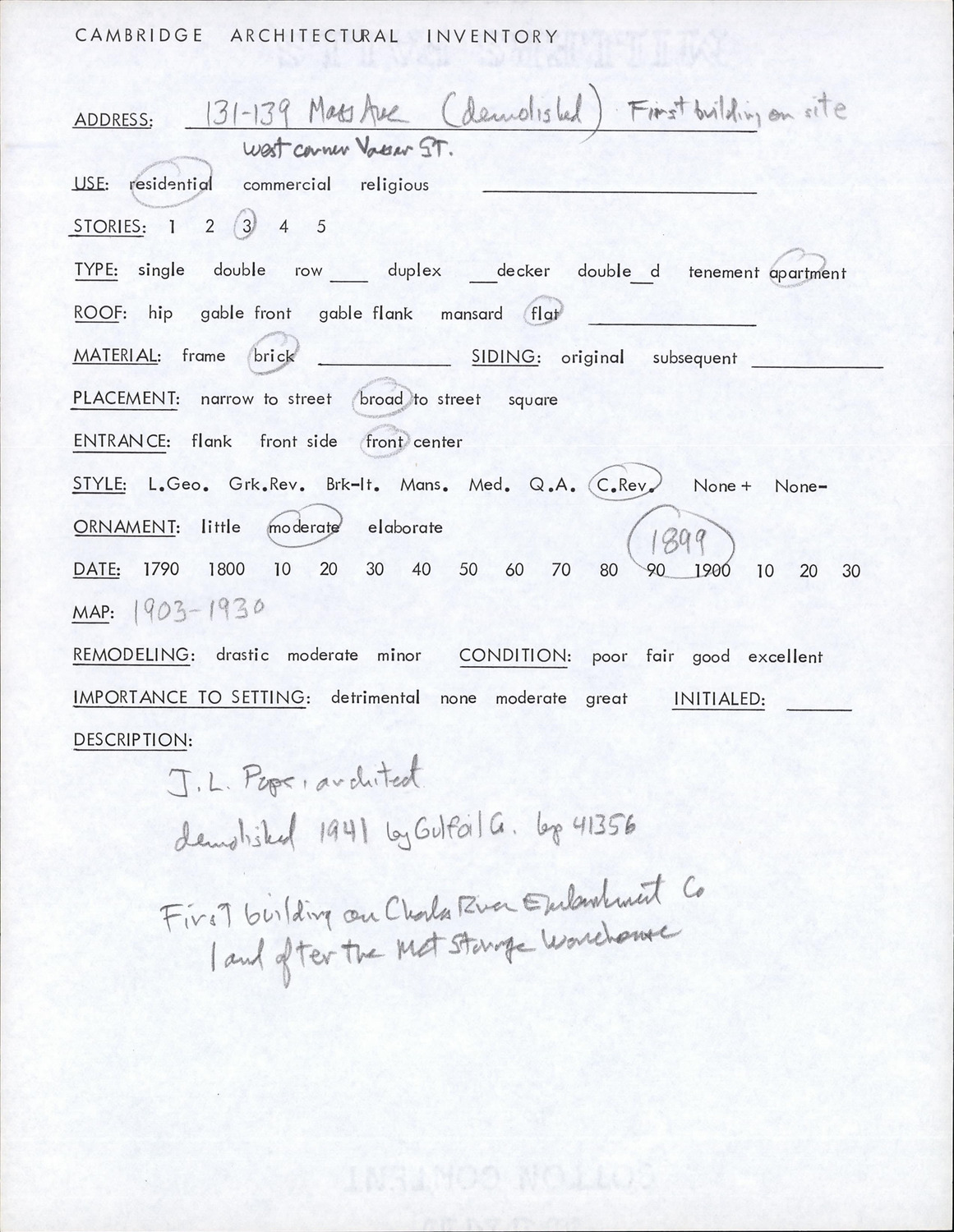 131-139 Massachusetts Ave - Architectural Inventory Form