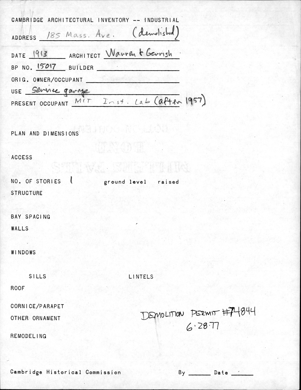 - Cambridge Historical Commission, Digital Architectural Survey and History.
