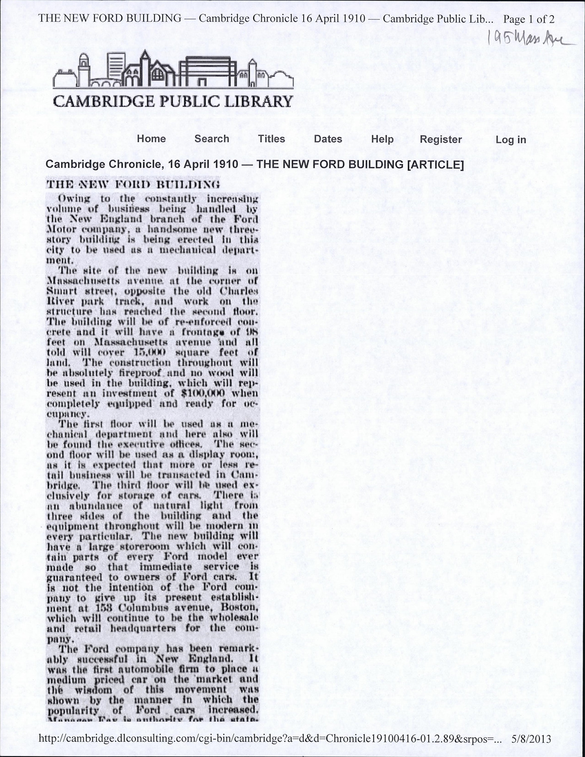 - Cambridge Historical Commission, Digital Architectural Survey and History.