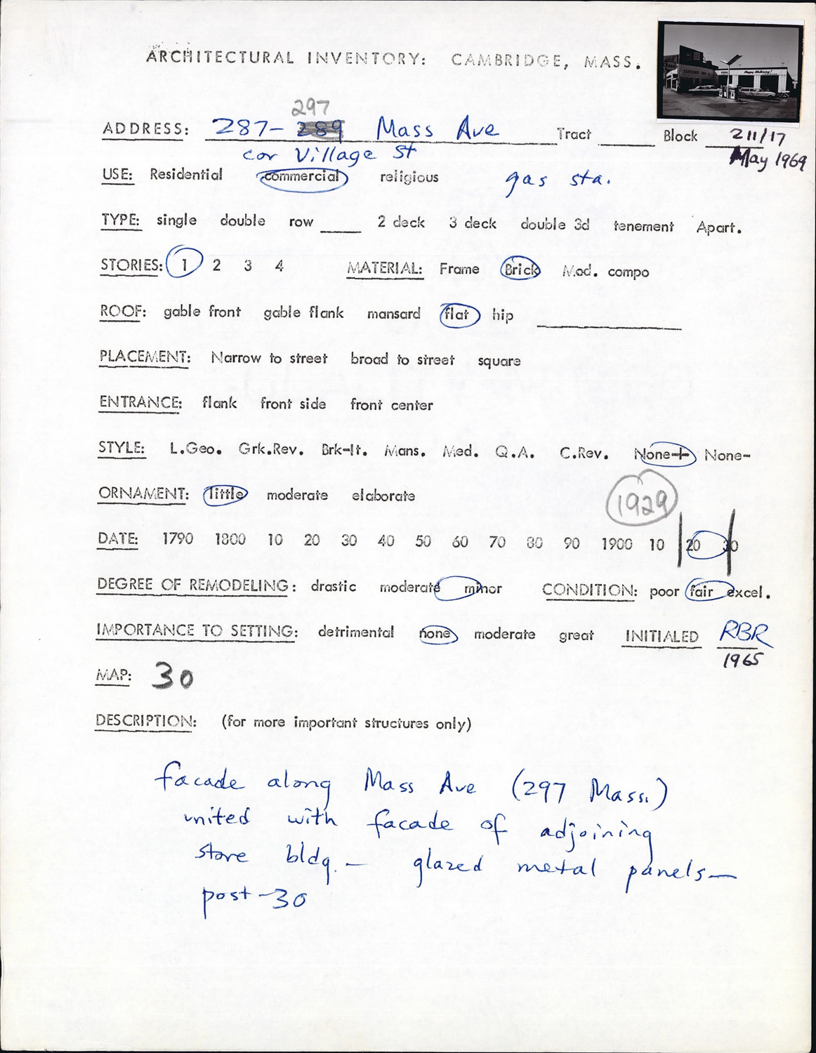 287-297 Massachusetts Ave - Architectural Inventory Form