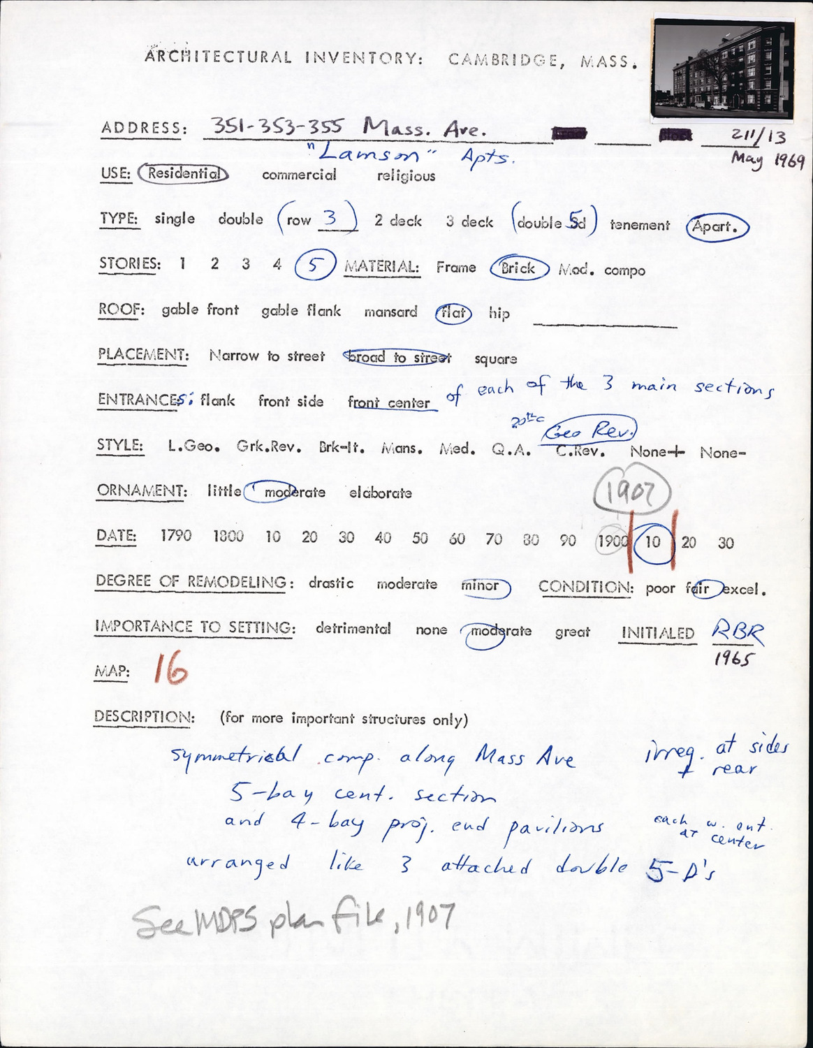 351-355 Massachusetts Ave - Architectural Inventory Form