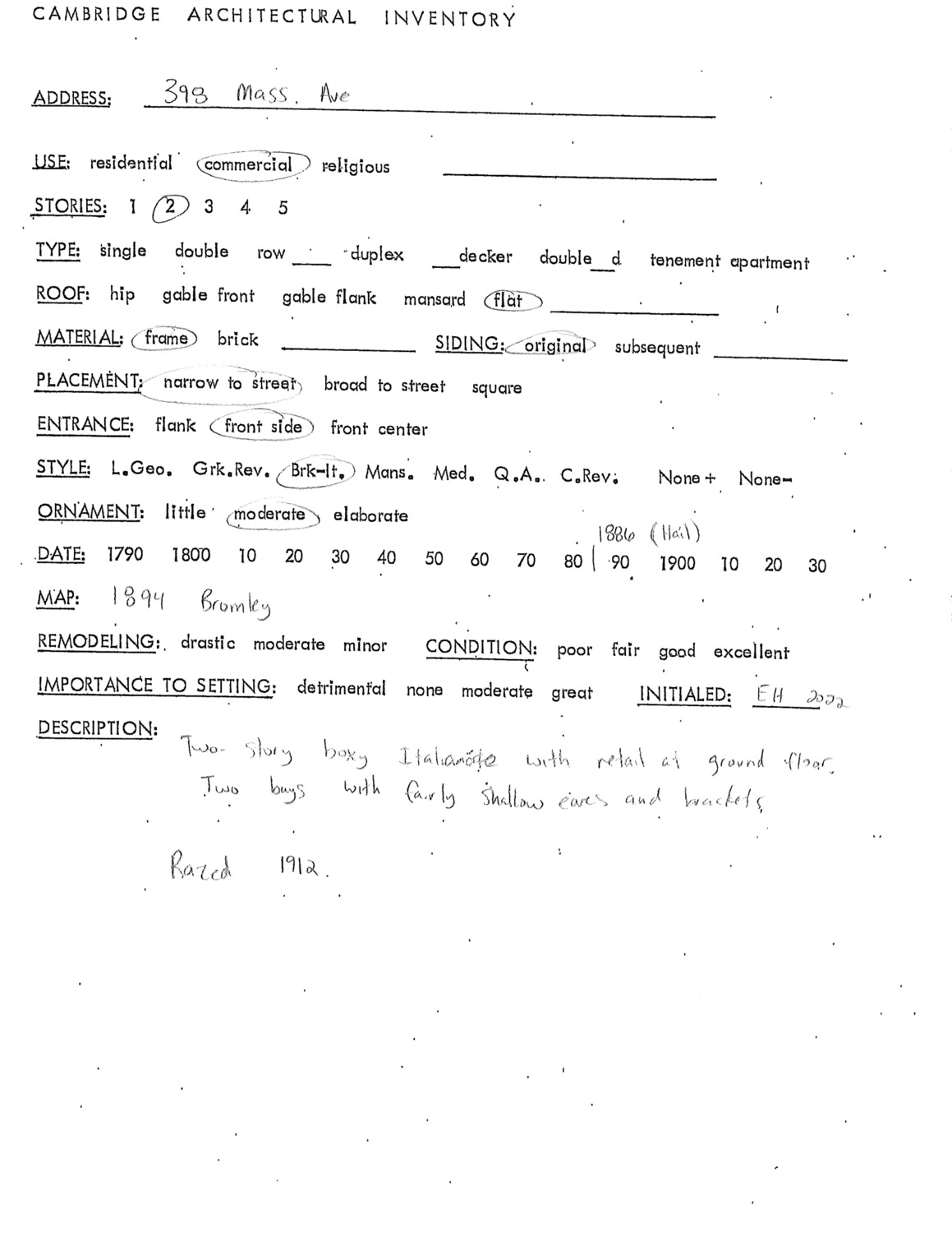 - Cambridge Historical Commission, Digital Architectural Survey and History.