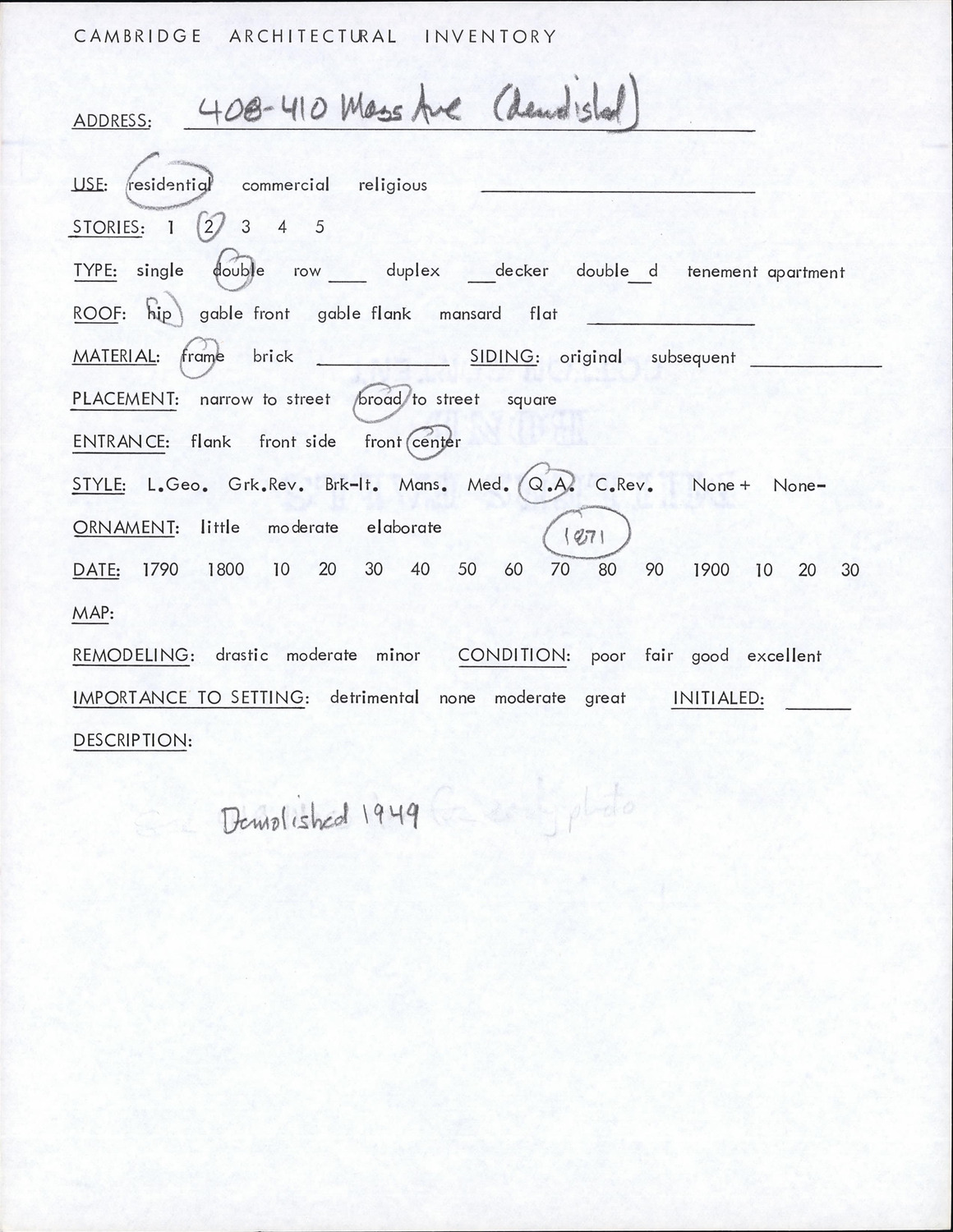 408-410 Massachusetts Ave - Architectural Inventory Form