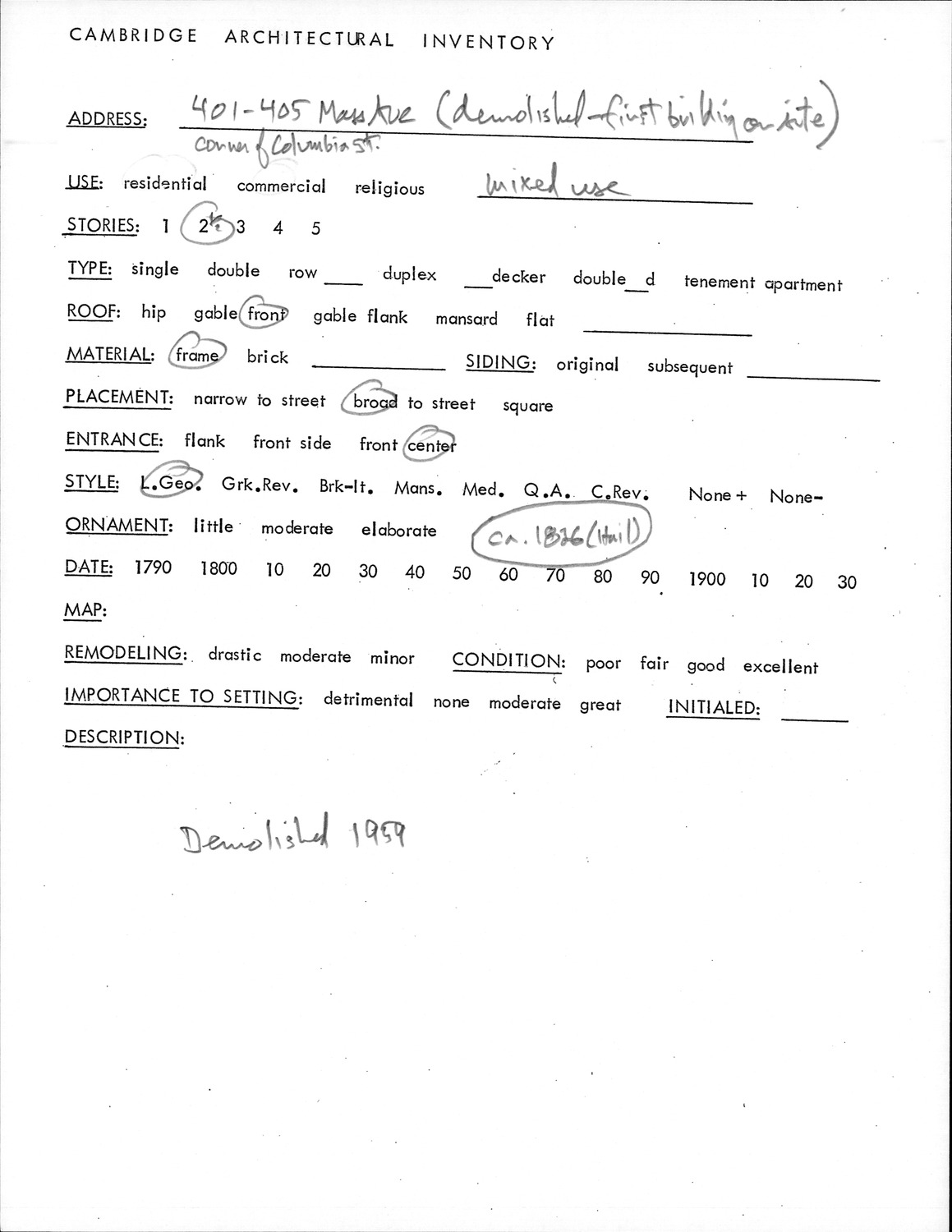 401-405 Massachusetts Ave - Architectural Inventory Form
