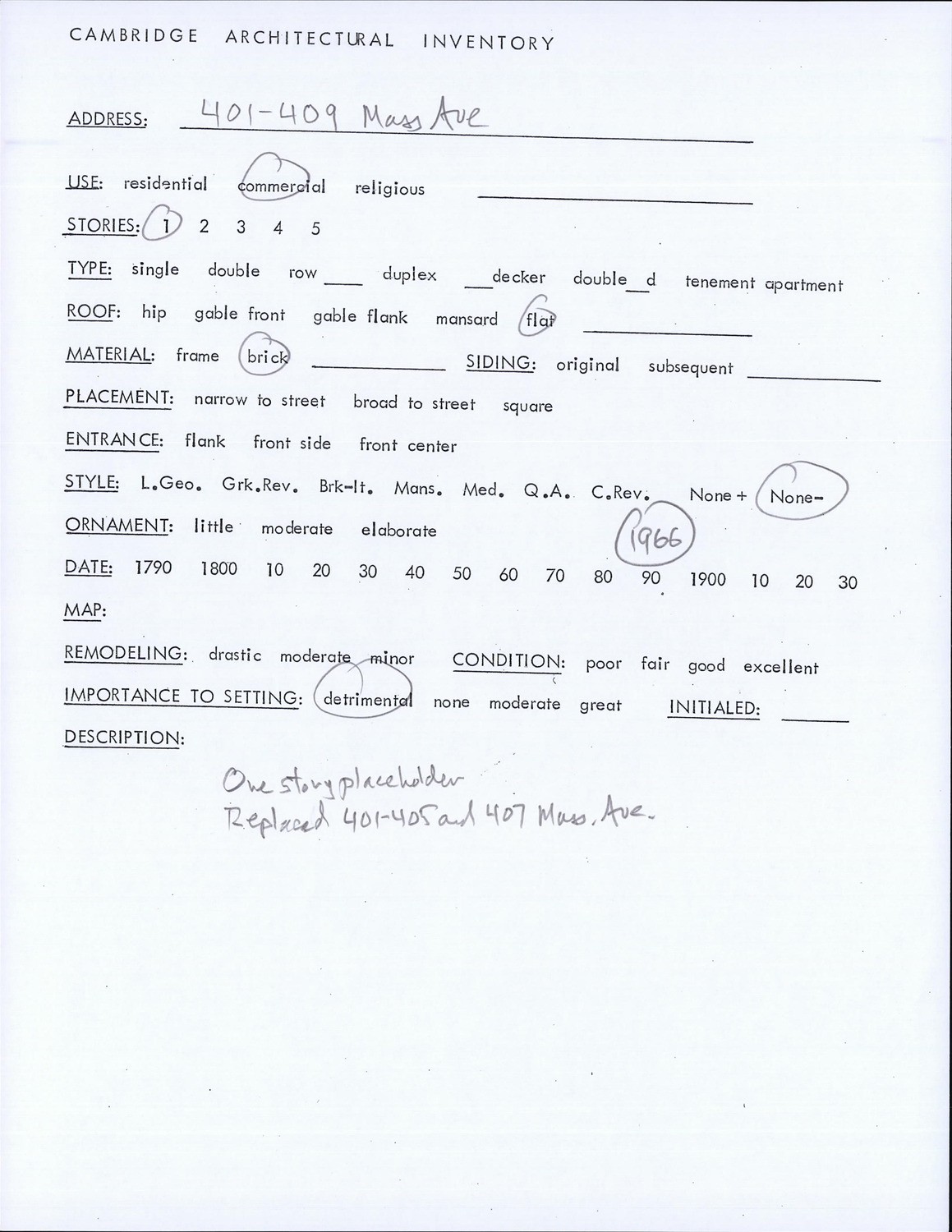401-409 Massachusetts Ave - Architectural Inventory Form