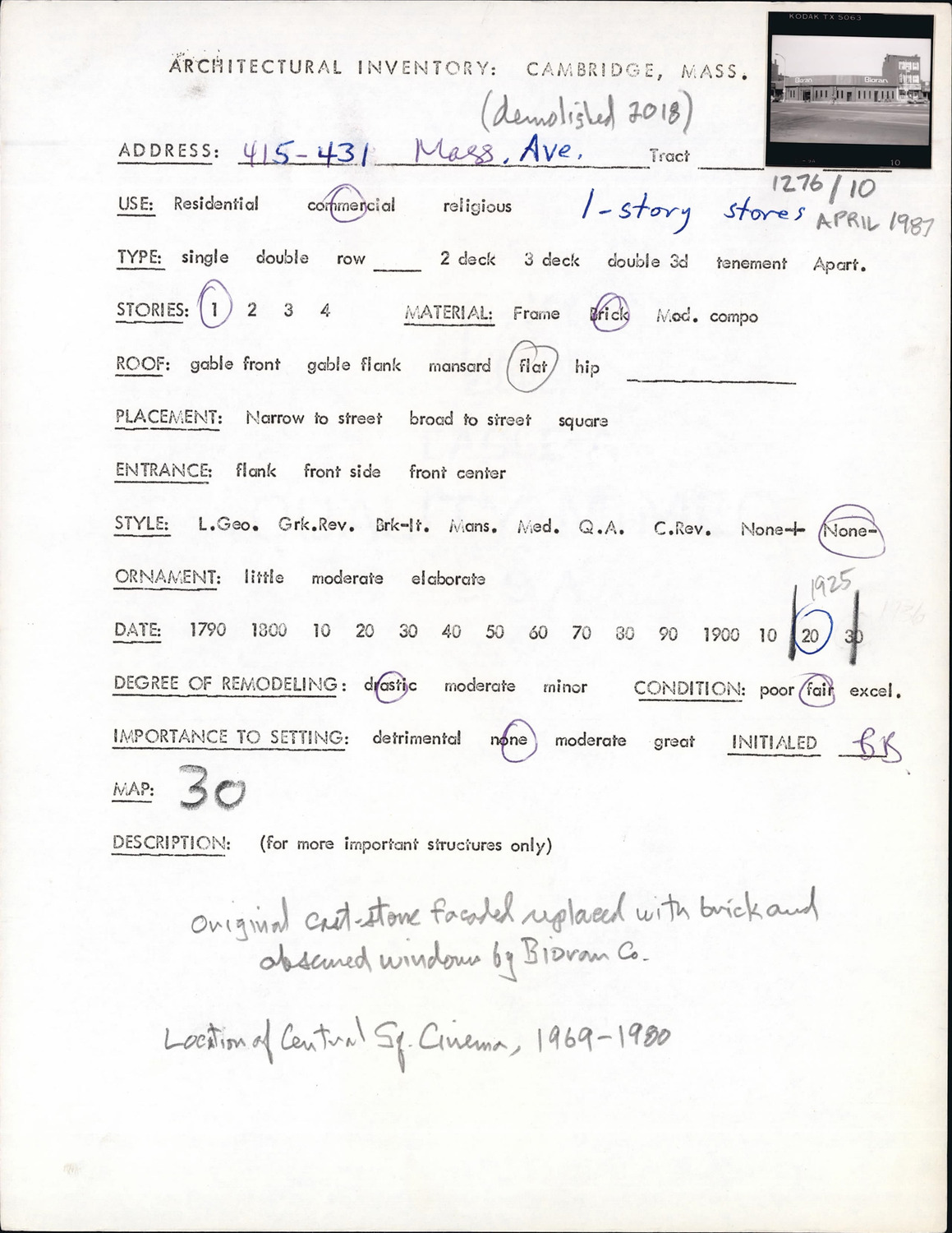 415-431 Massachusetts Ave - Architectural Inventory Form