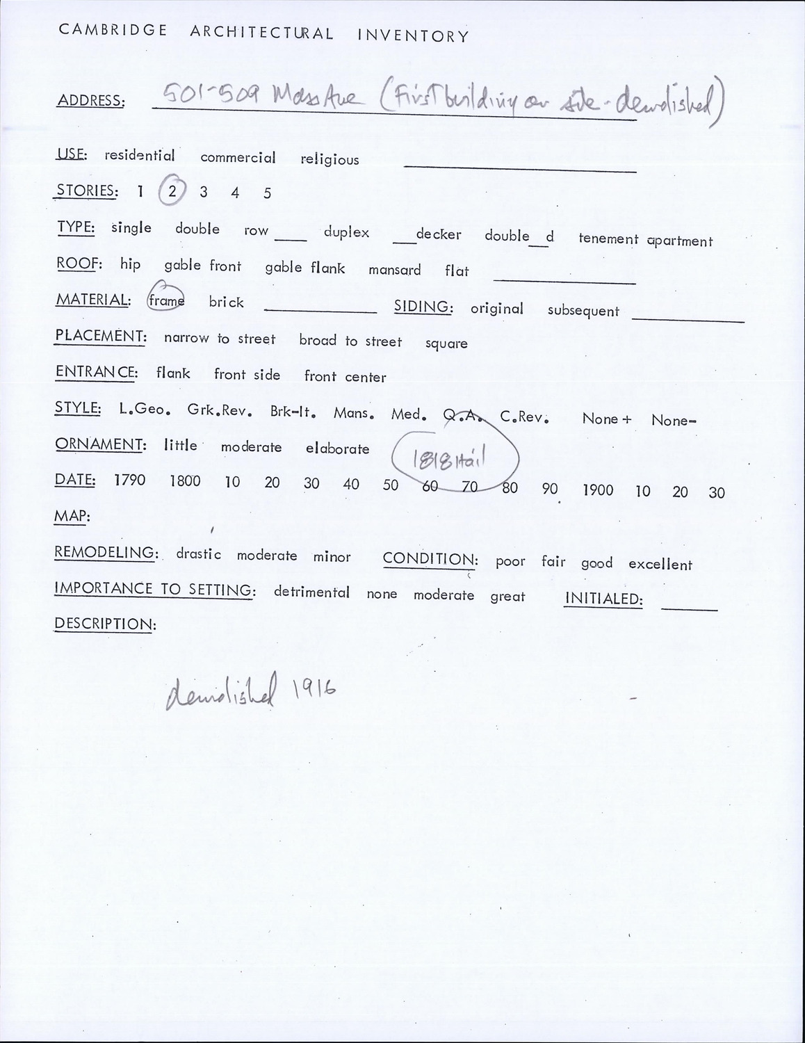 501-509 Massachusetts Ave - Architectural Inventory Form
