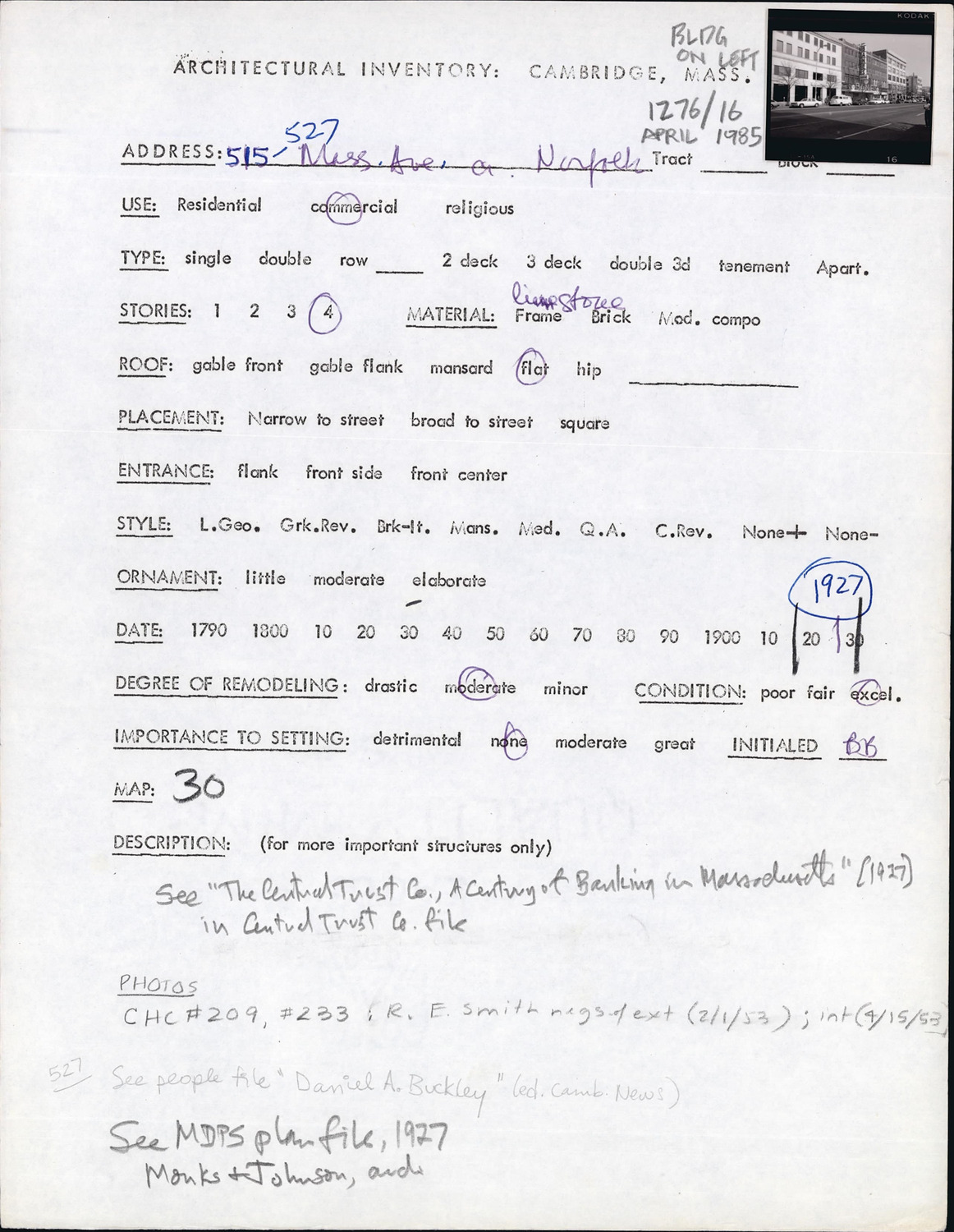 515-527 Massachusetts Ave - Architectural Inventory Form
