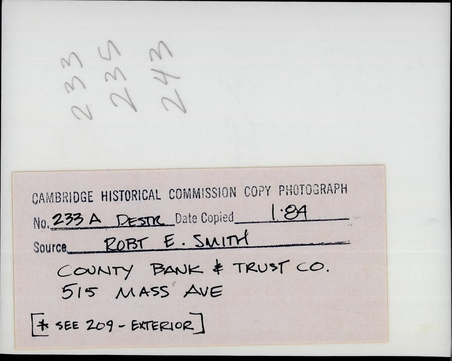 - Cambridge Historical Commission, Digital Architectural Survey and History.