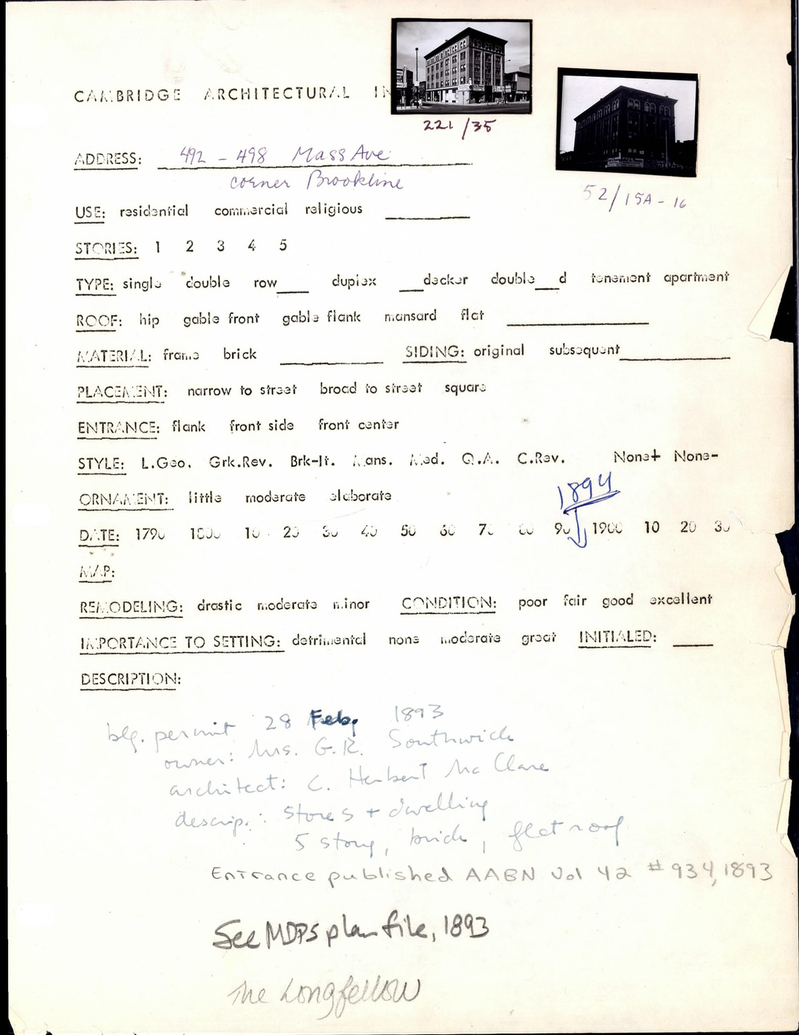 492-498 Massachusetts Ave - Architectural Inventory Form