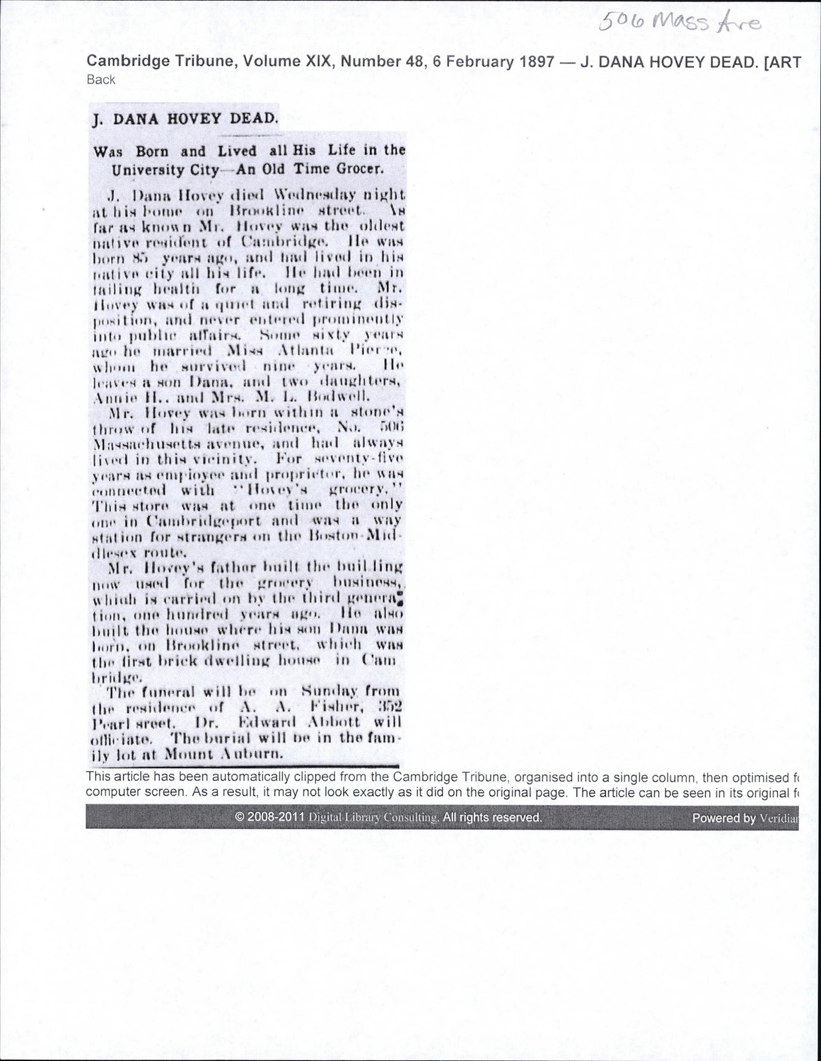 - Cambridge Historical Commission, Digital Architectural Survey and History.