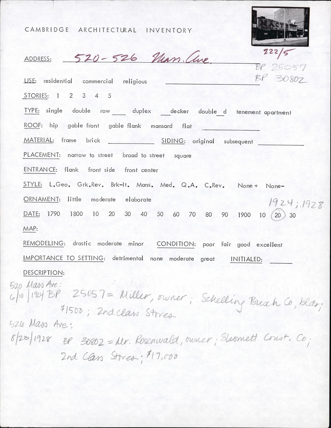 520-526 Massachusetts Ave - Architectural Inventory Form