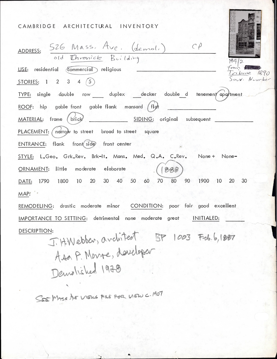 - Cambridge Historical Commission, Digital Architectural Survey and History.