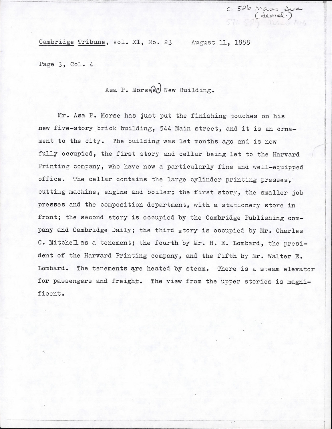- Cambridge Historical Commission, Digital Architectural Survey and History.