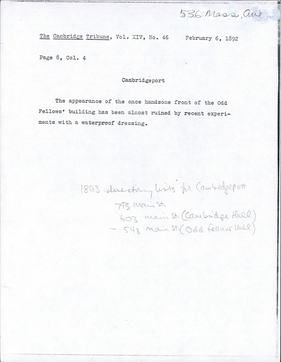 536 Massachusetts Ave - Published Material