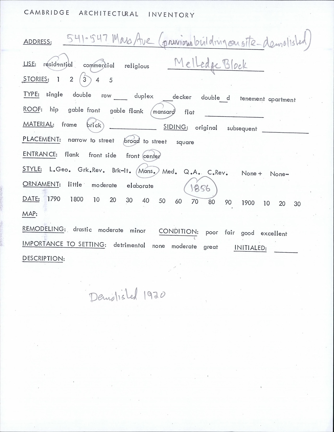 541-547 Massachusetts Ave - Architectural Inventory Form