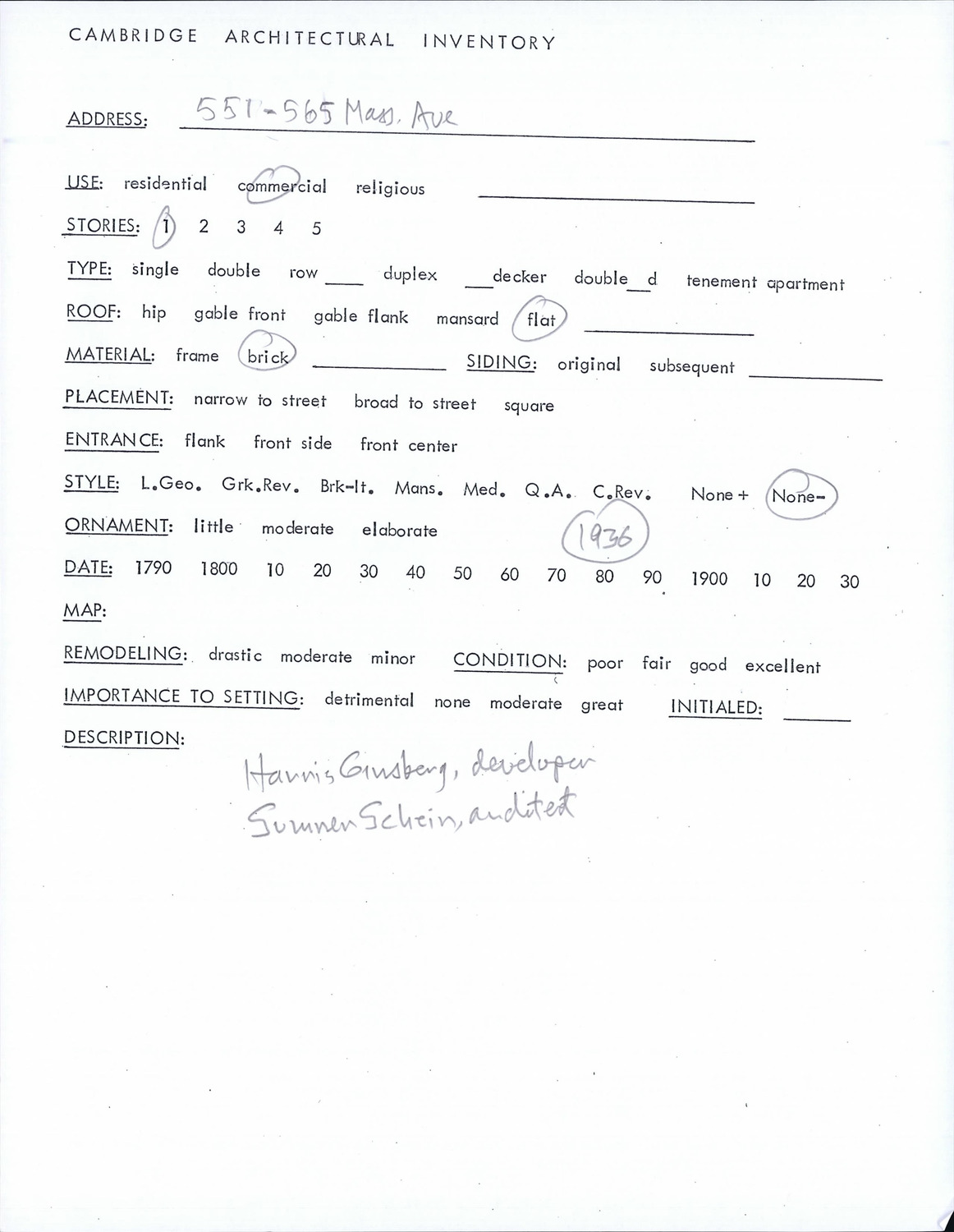 551-565 Massachusetts Ave - Architectural Inventory Form