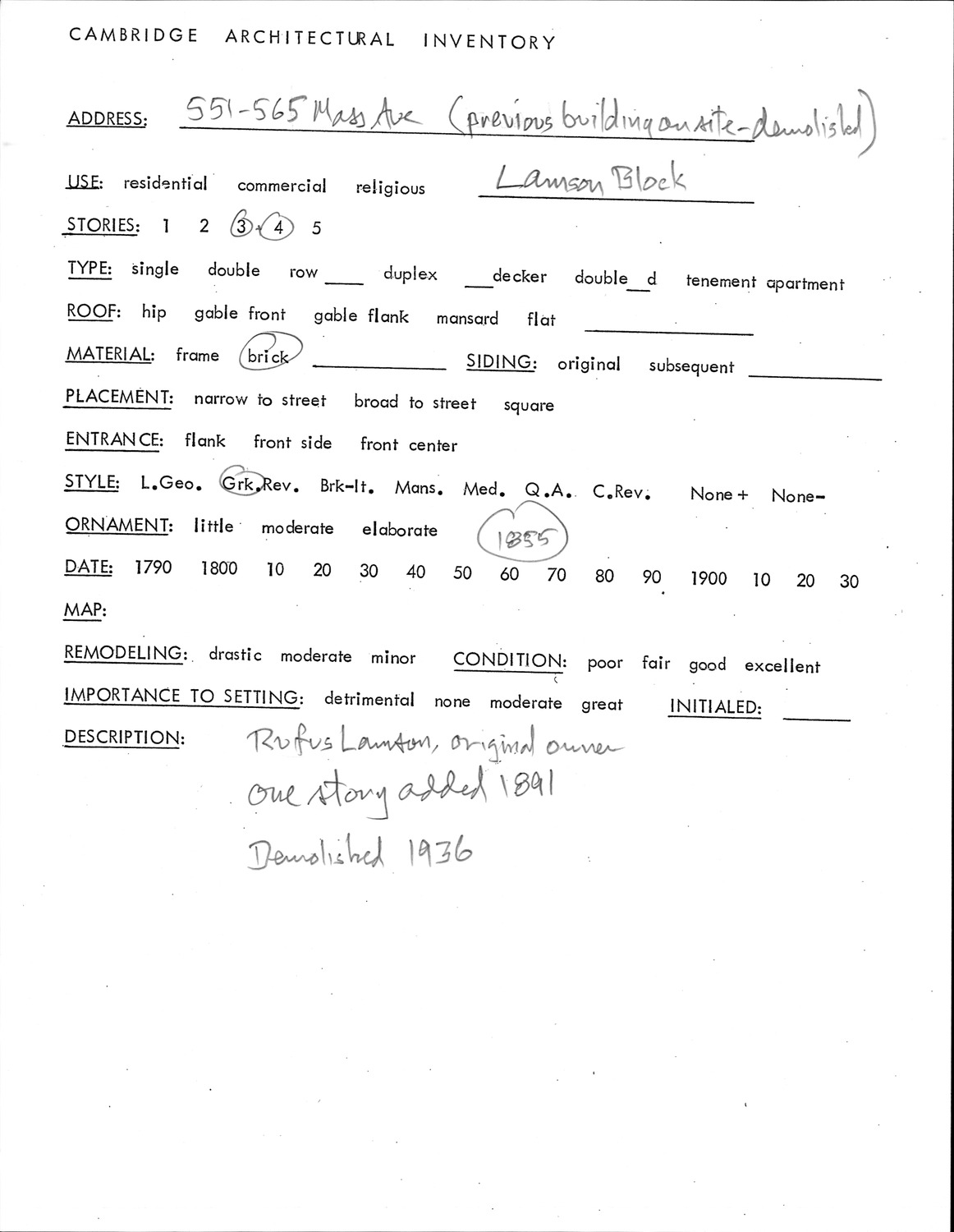 551-565 Massachusetts Ave - Architectural Inventory Form